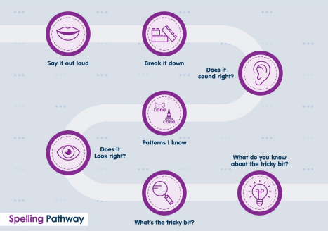 When meeting spellings children may be unsure of within their writing, we encourage the children to follow the 'spelling pathway' to success: