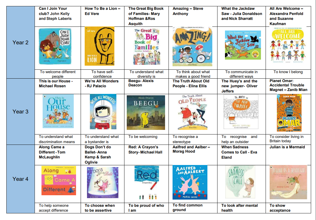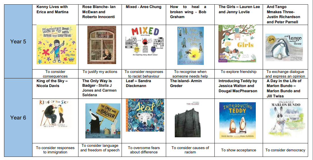 You are very welcome to call in to see your child’s class teacher to discuss this approach and to view the picture books we shall be using. A full list of the books used and lesson objectives can be found below.