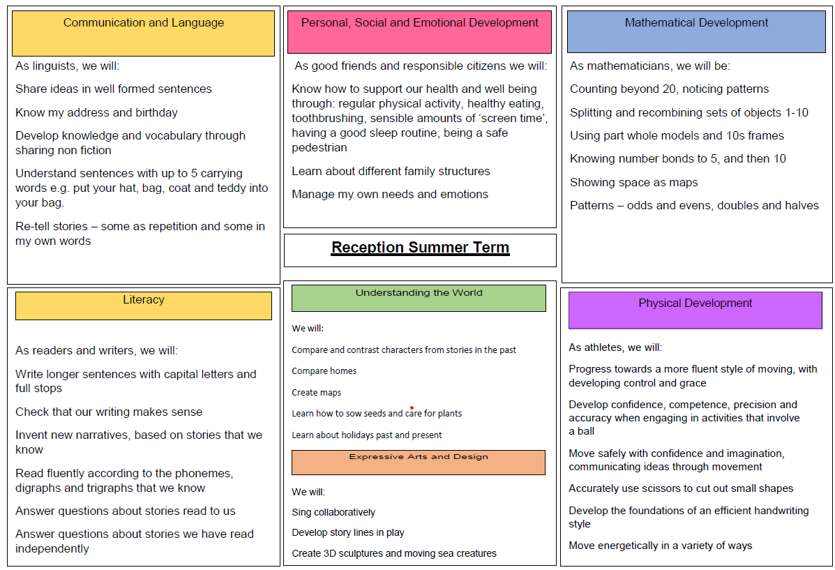In the summer term, we consolidate phonemes, digraphs and trigraphs and learn to read longer words. We also build upon our comprehension skills by talking about the book we have read.