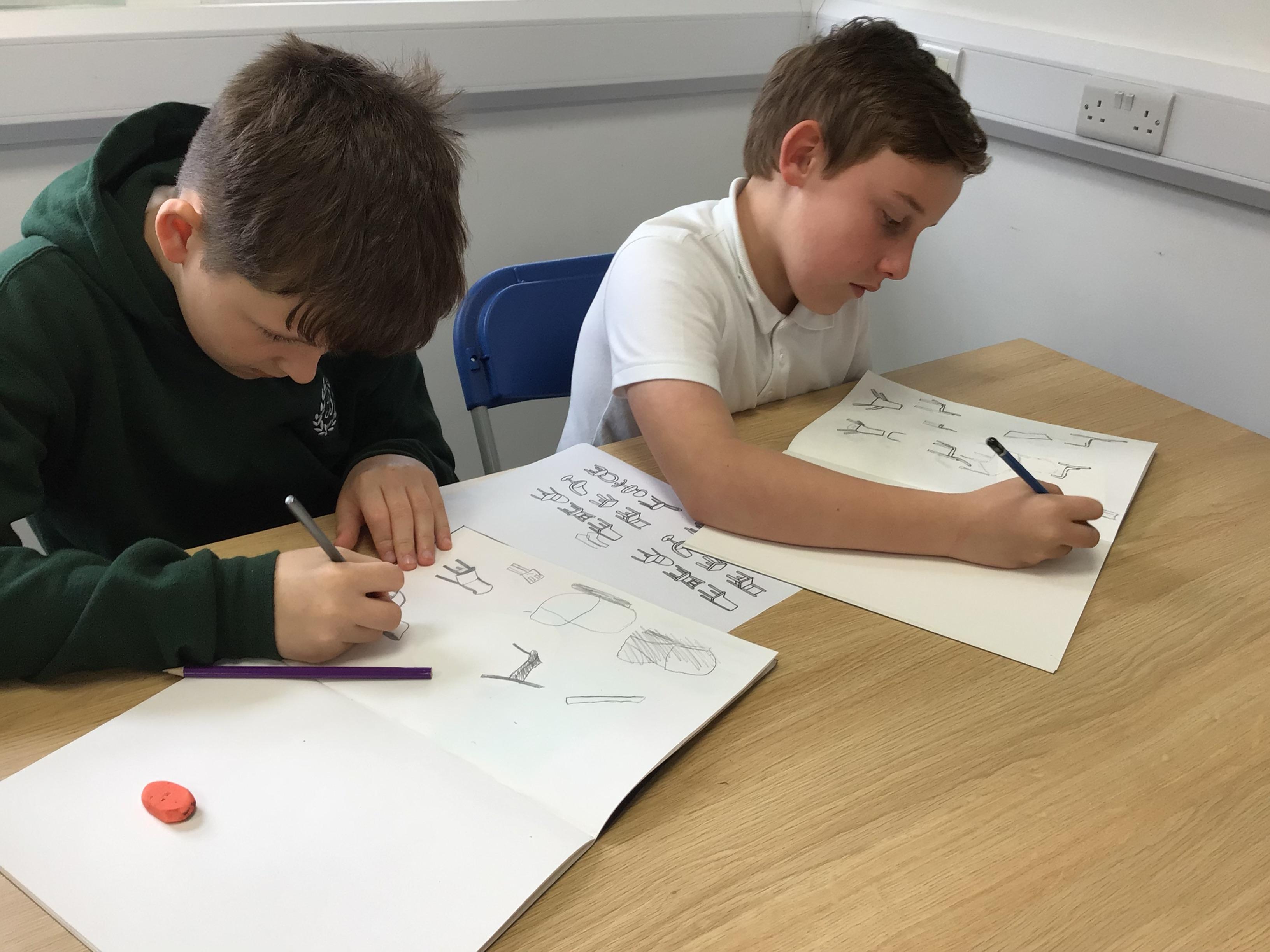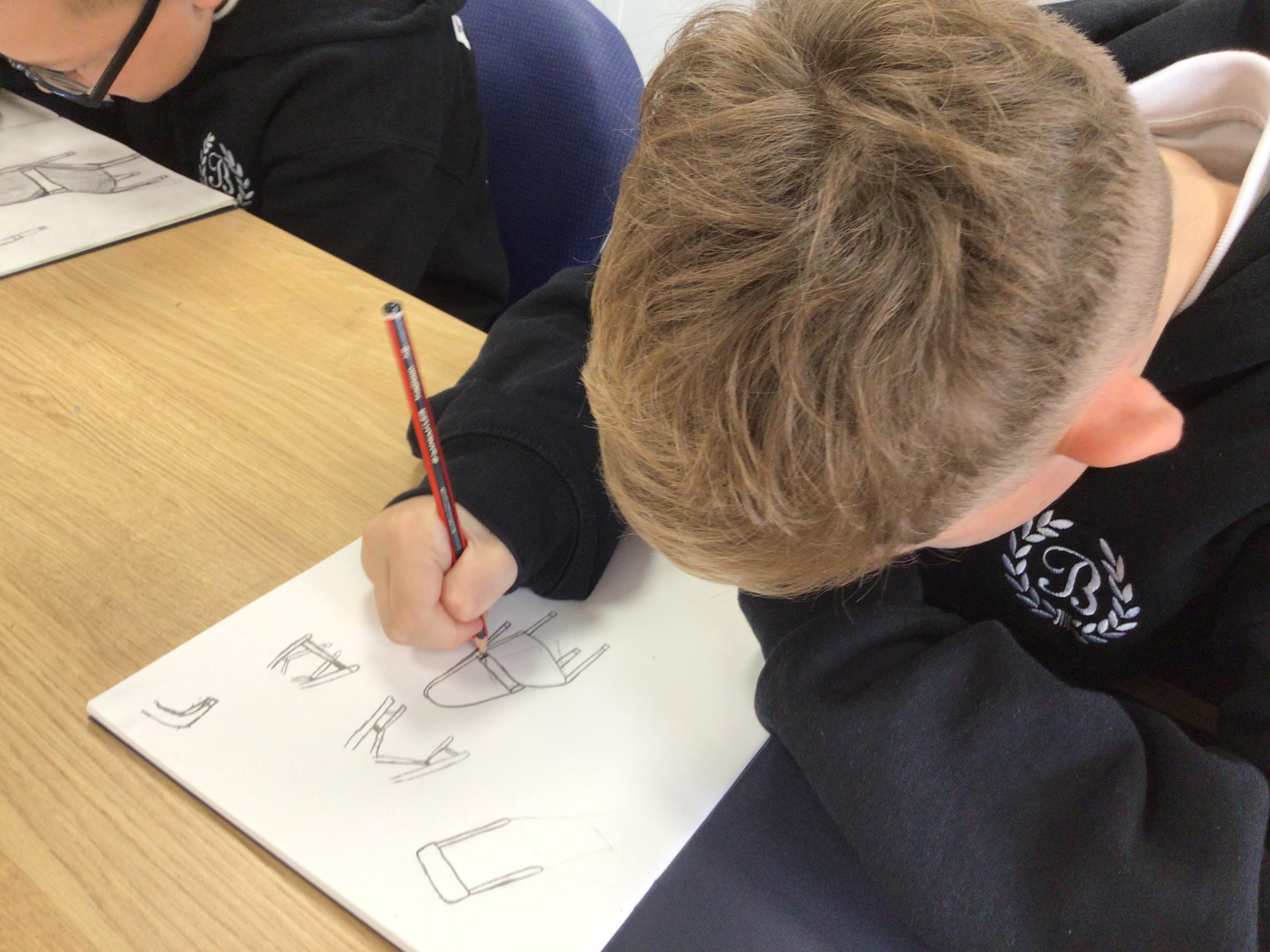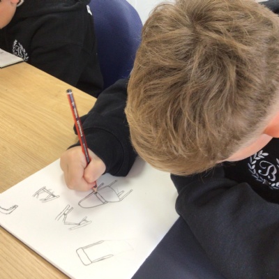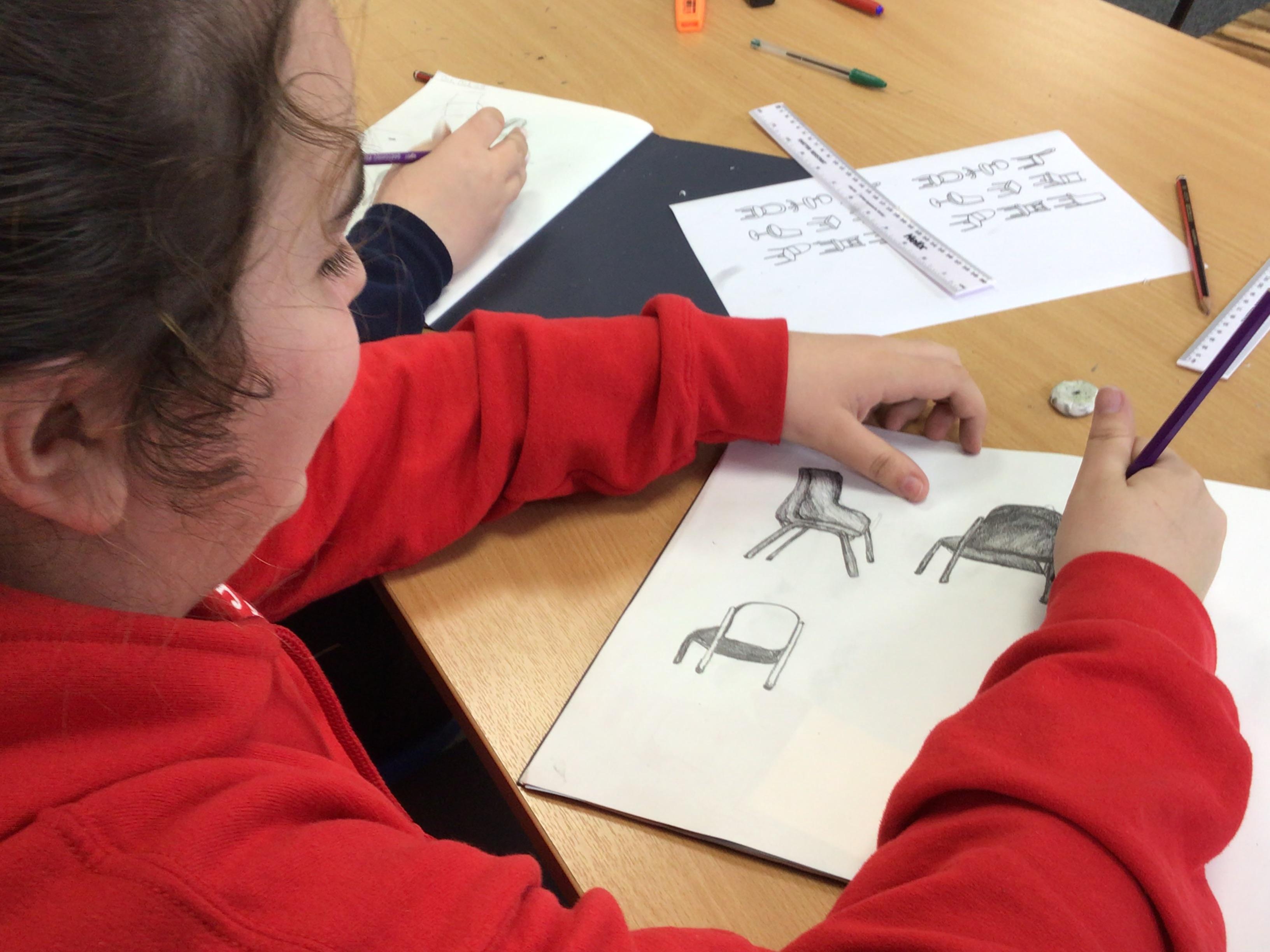 Before designing our own small models we spent time observing and drawing chairs around us. Children developed our skills of observational sketching and had to work hard to get the correct proportion and perspective. Shading was used to give depth. Sketching the chairs gave children time to really examine how different chairs are put together.