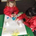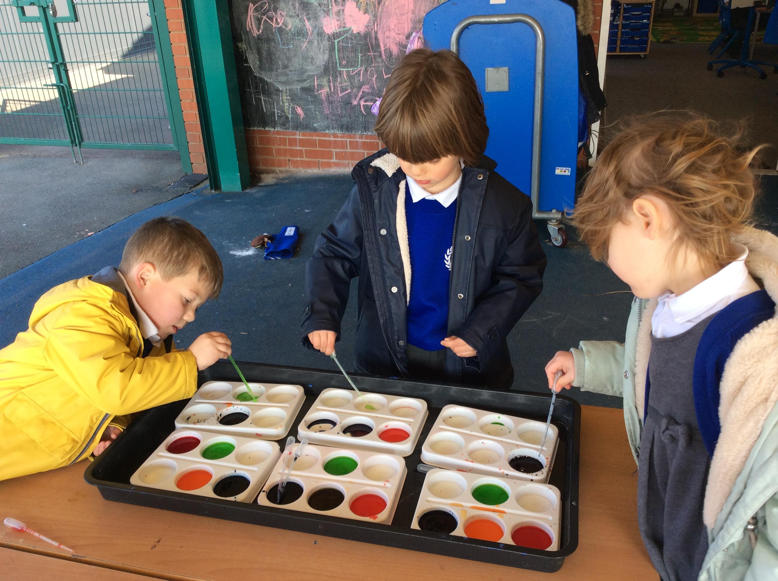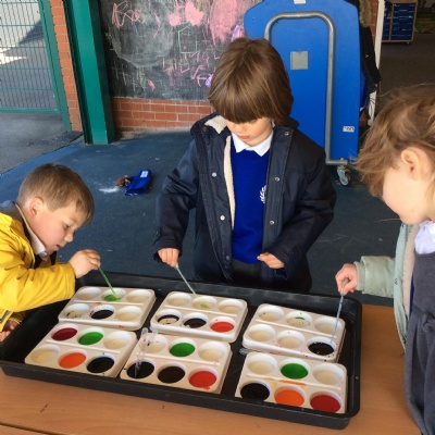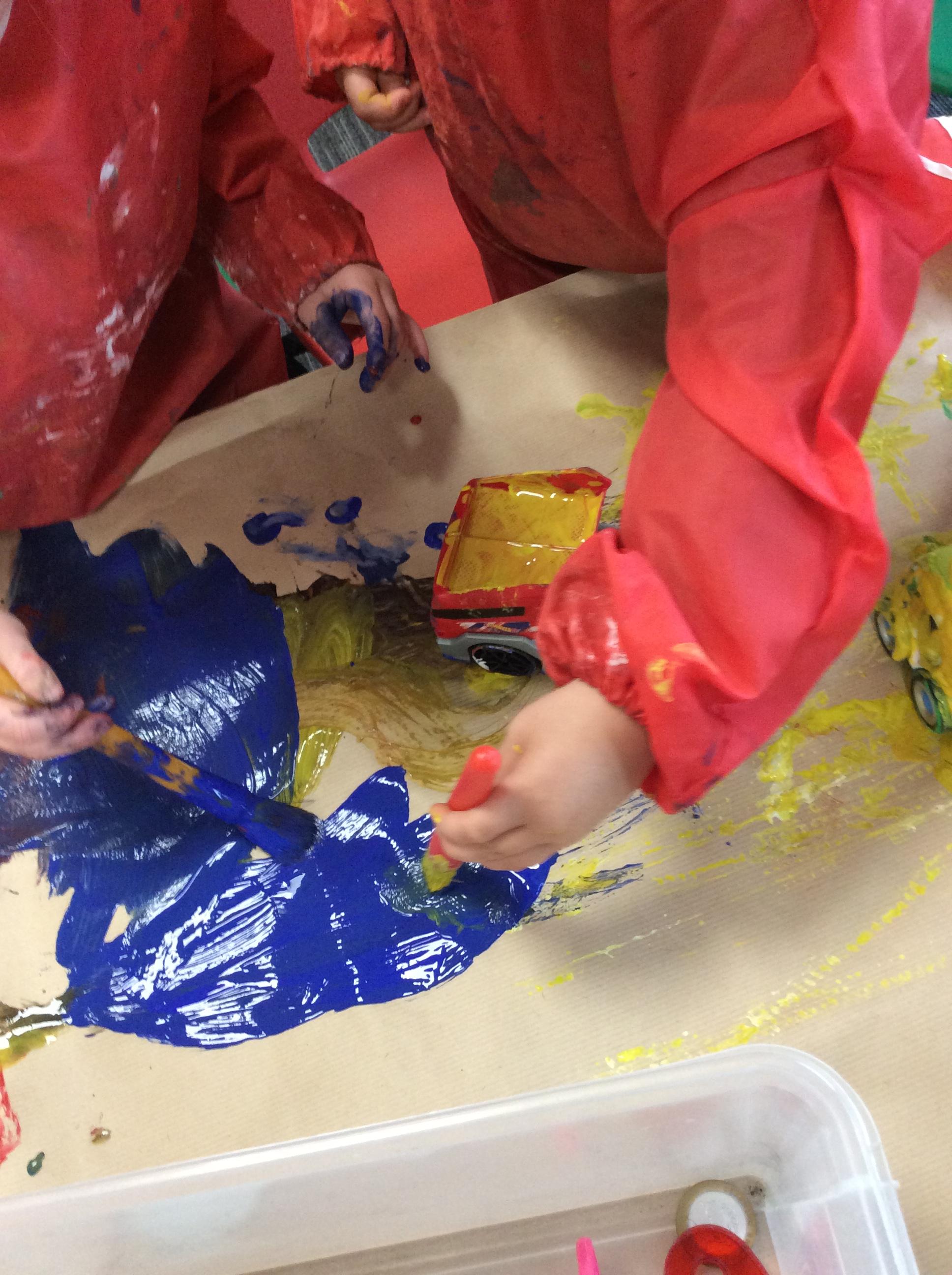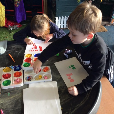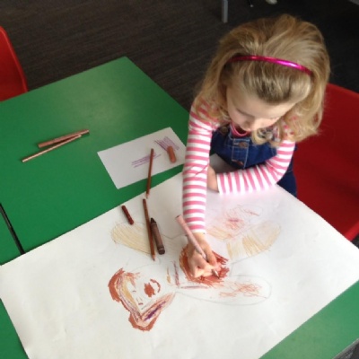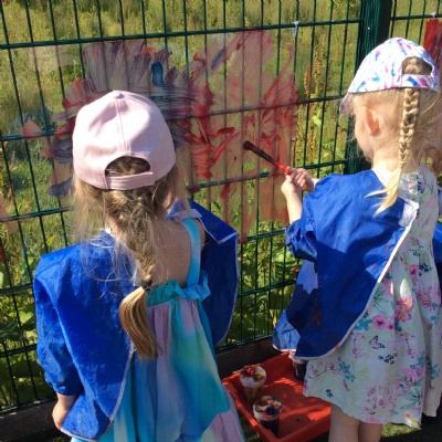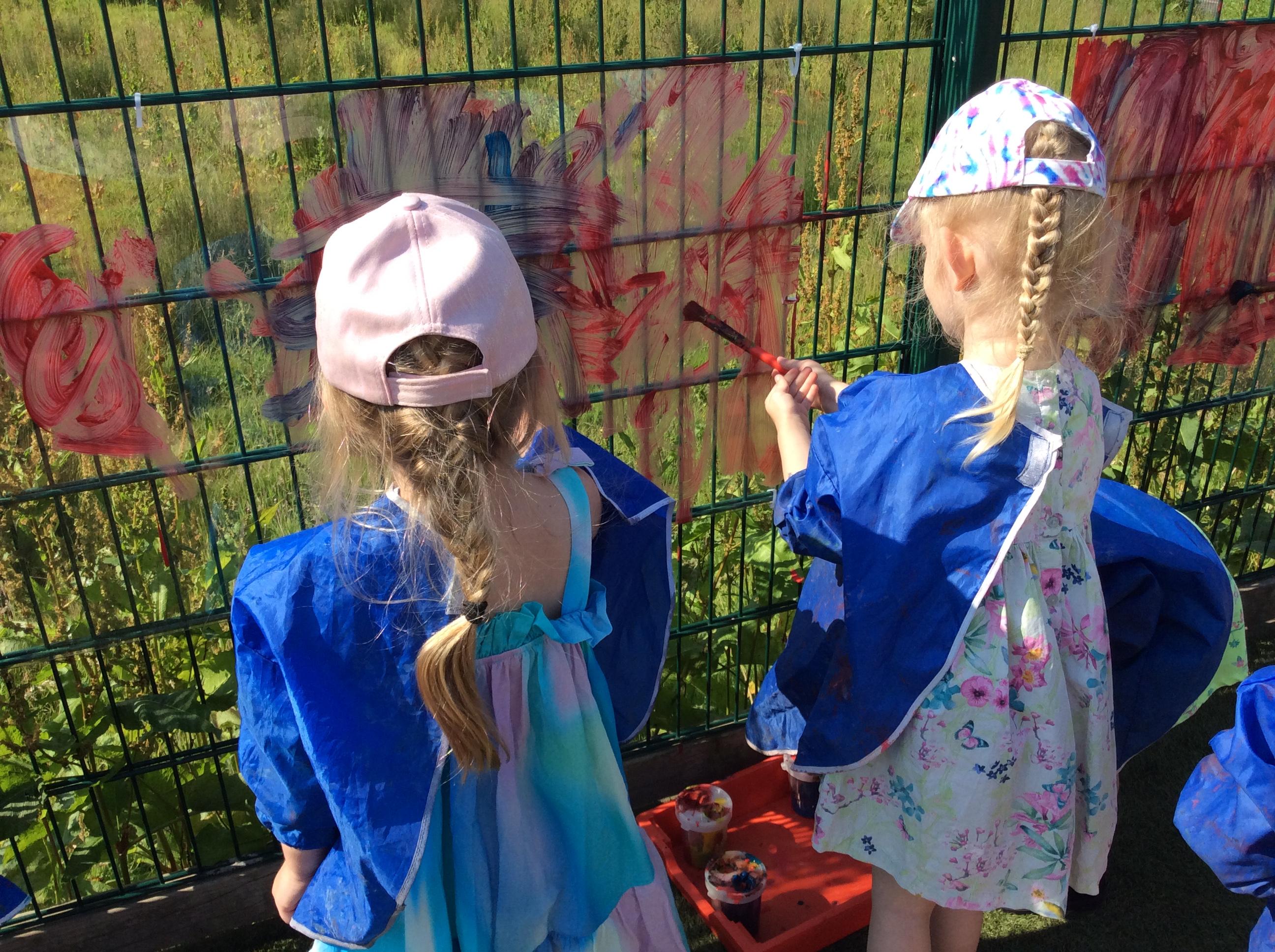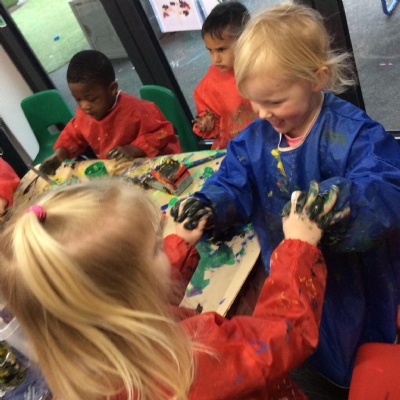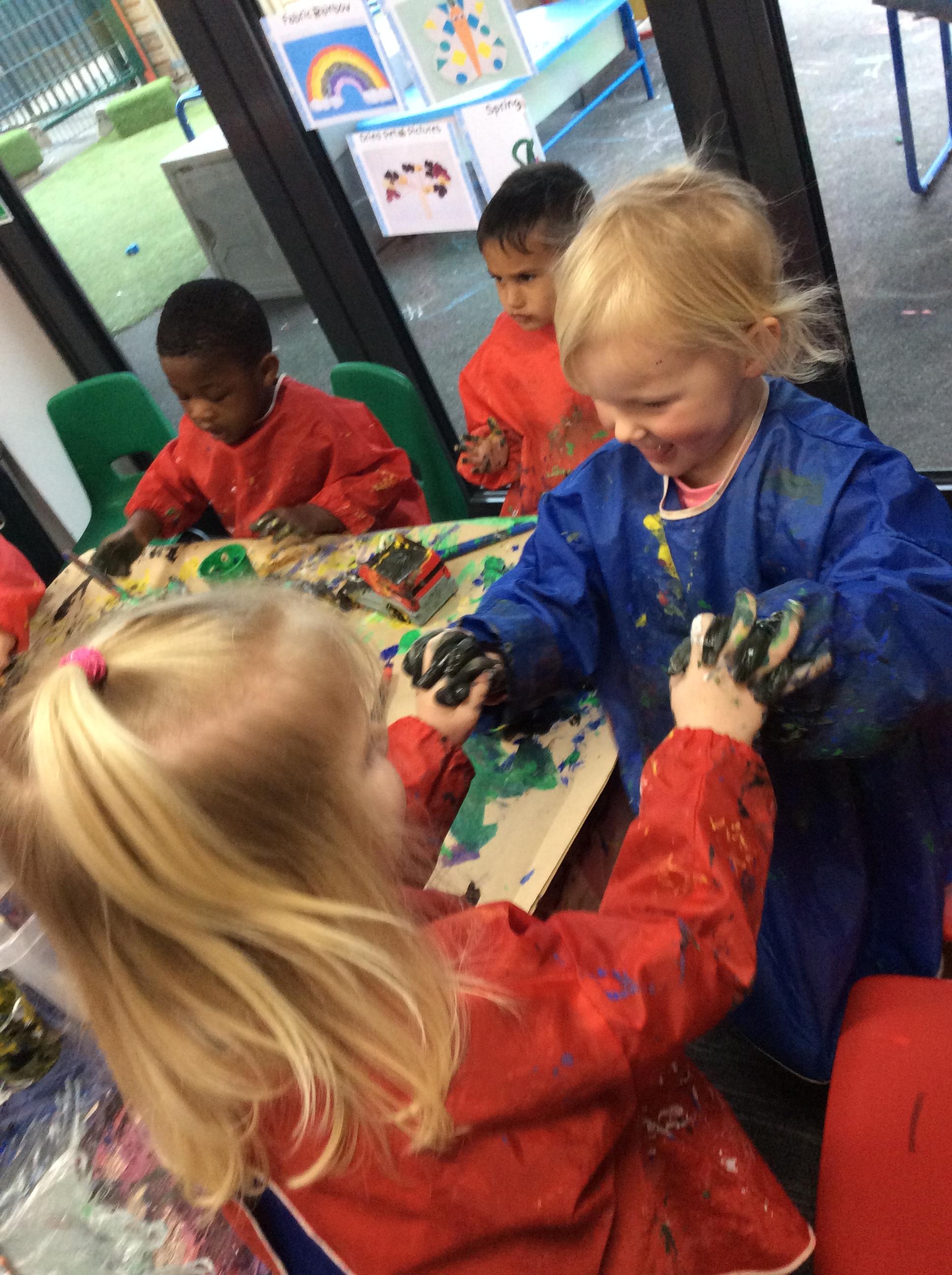 In nursery we explore and play with a wide range of media and materials. Our art is focused on the process over the product allowing children to freely express themselves and develop skills required for their artistic journey. We have looked at the artist Frank Stella and the teachers have modelled a variety of techniques based on process art, such as creating texture, pattern and enclosing shapes.