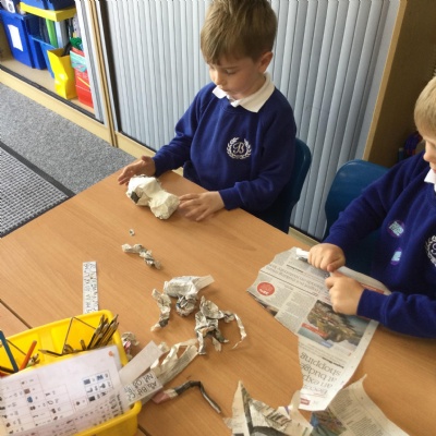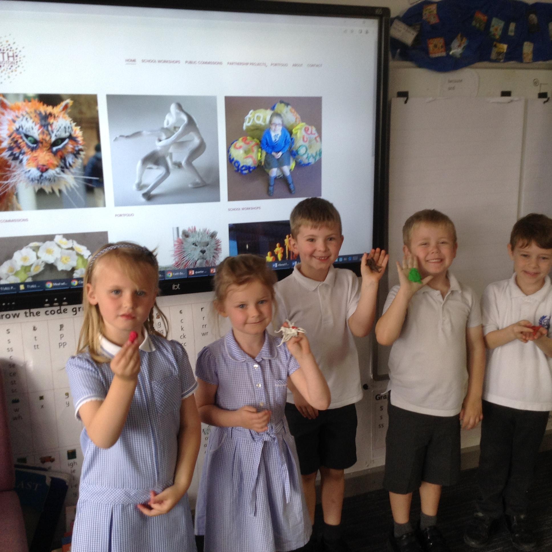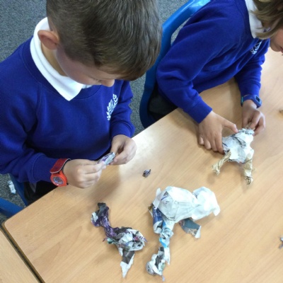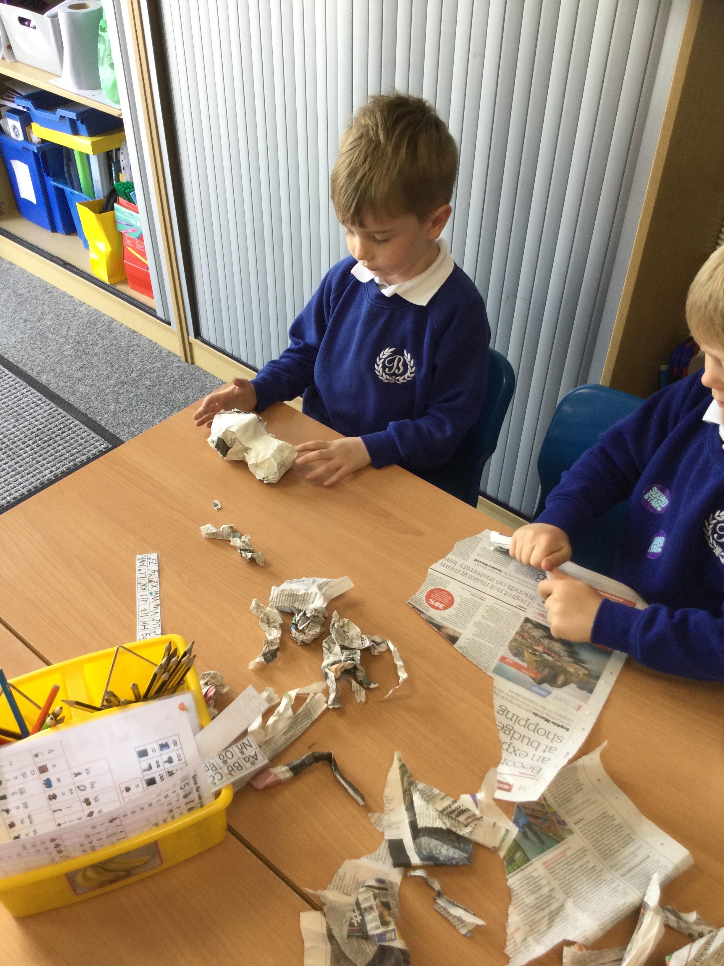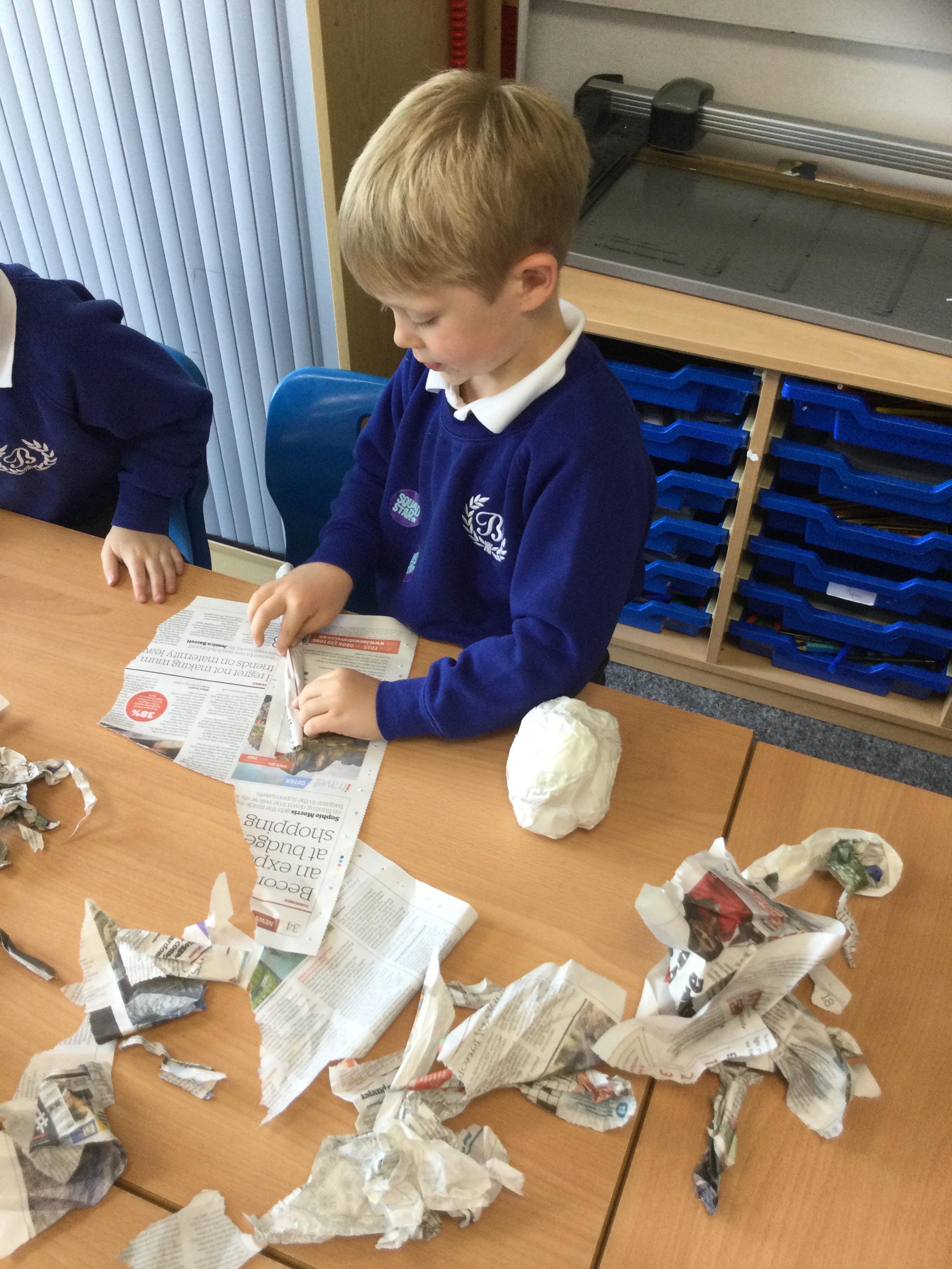 The children have been looking at different materials and how we can use them to create sculptures. We looked at a variety of artists that specialise in sculptures and chose the artist Faith Bebbington. Faith Bebbington is a local artist who produces sculptures big and small from all sorts of materials. We enjoyed making our sculptures using newspaper and masking tape and finally painting them.