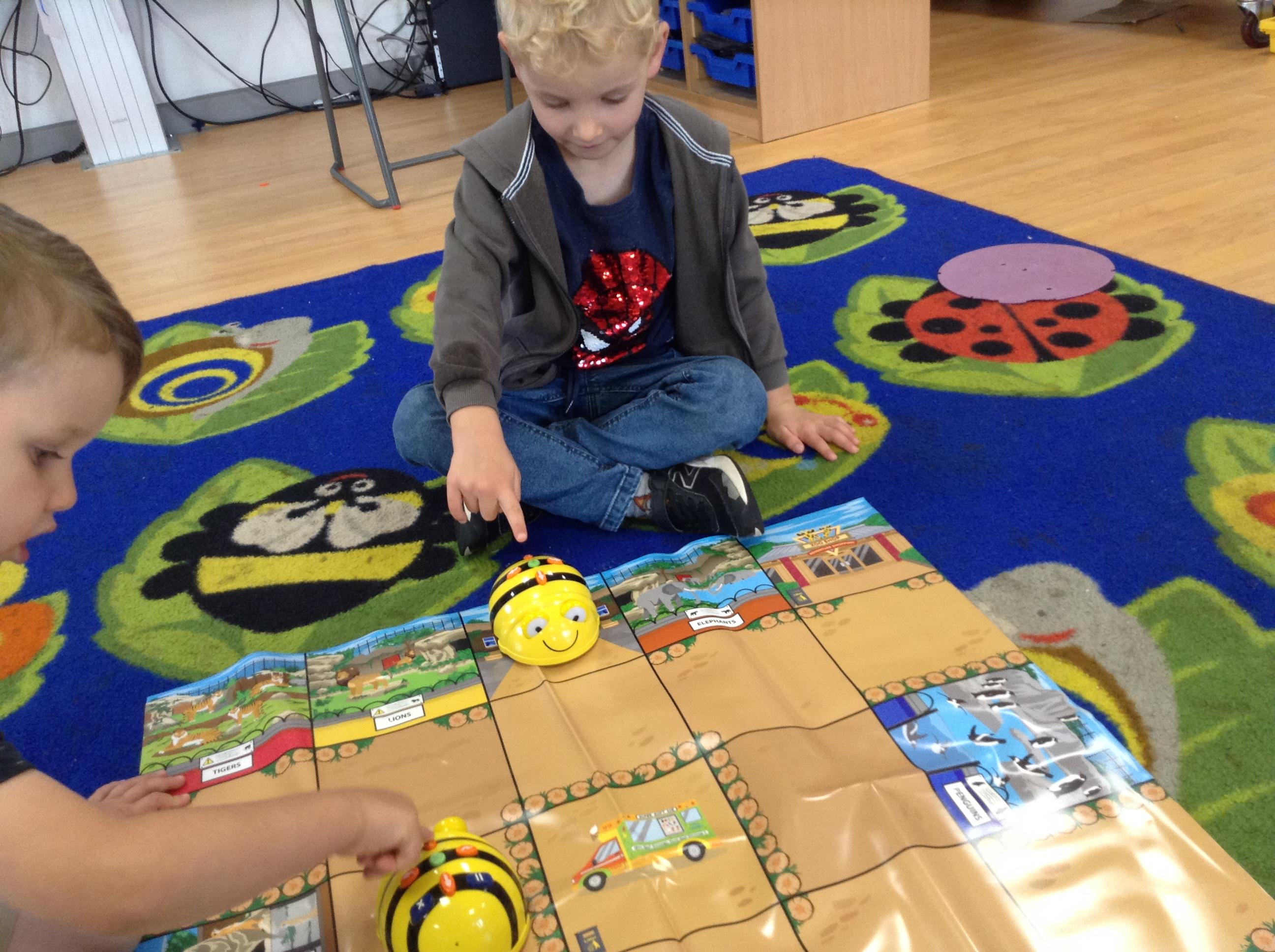 We have enjoyed learning how to programme Beebots and use them to travel around the classroom. We choose different instructions and programmed them to go to different places. We realised how tricky it can be to get the instructions right and how clever computers must be.