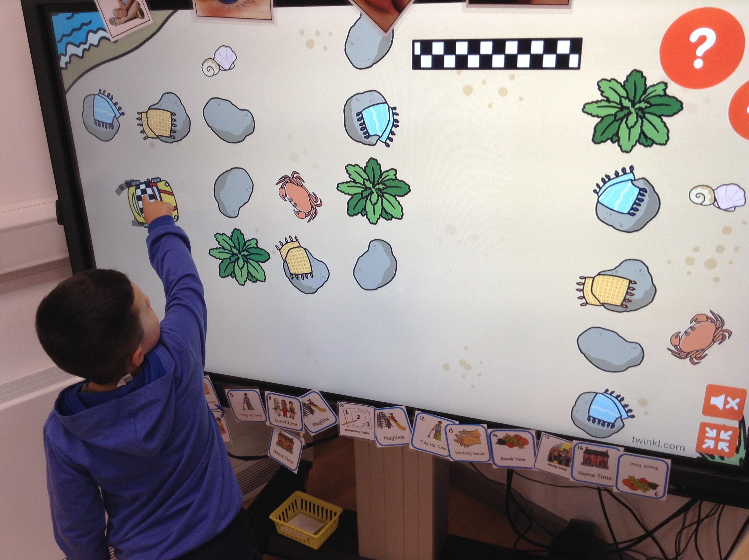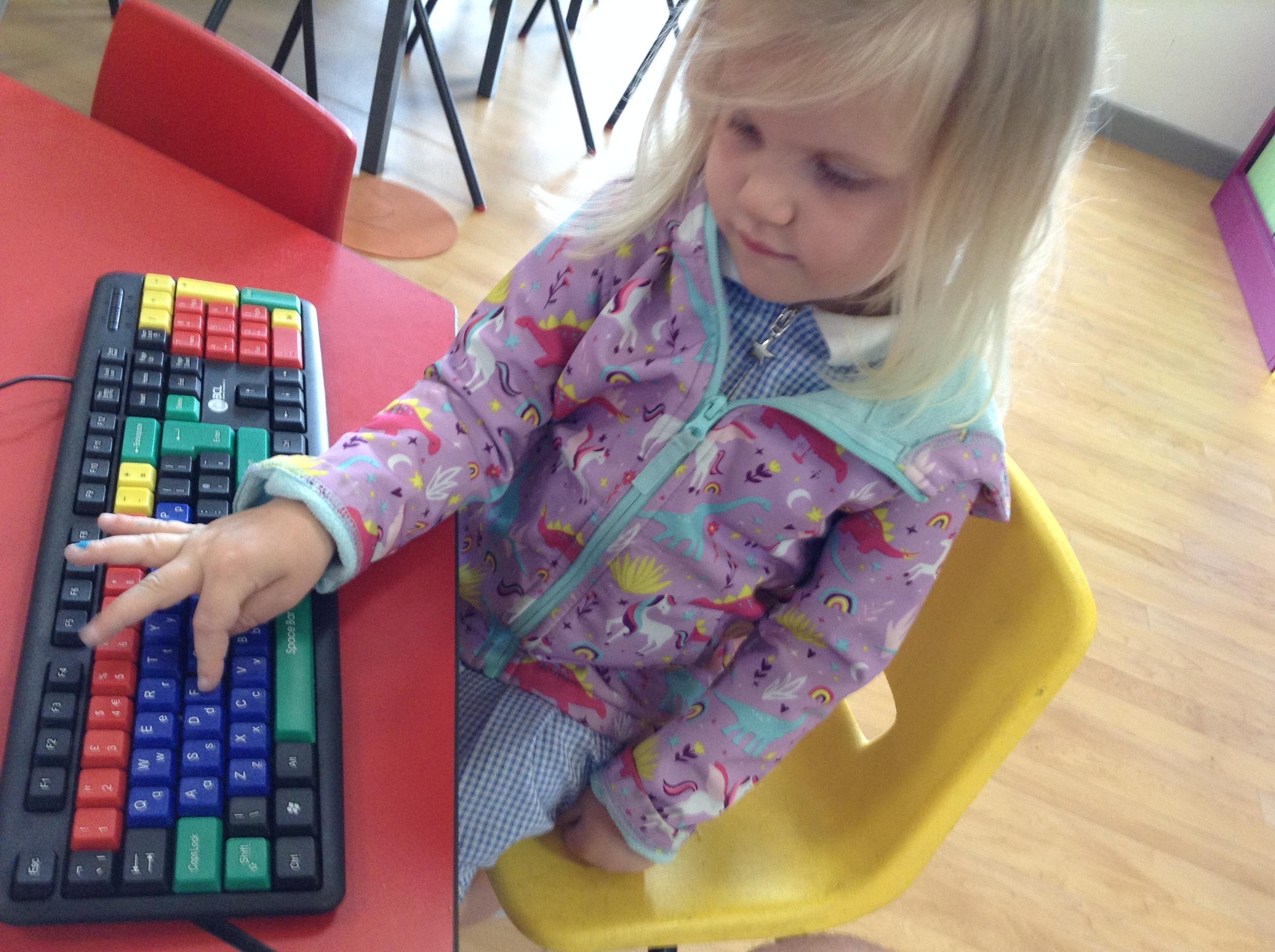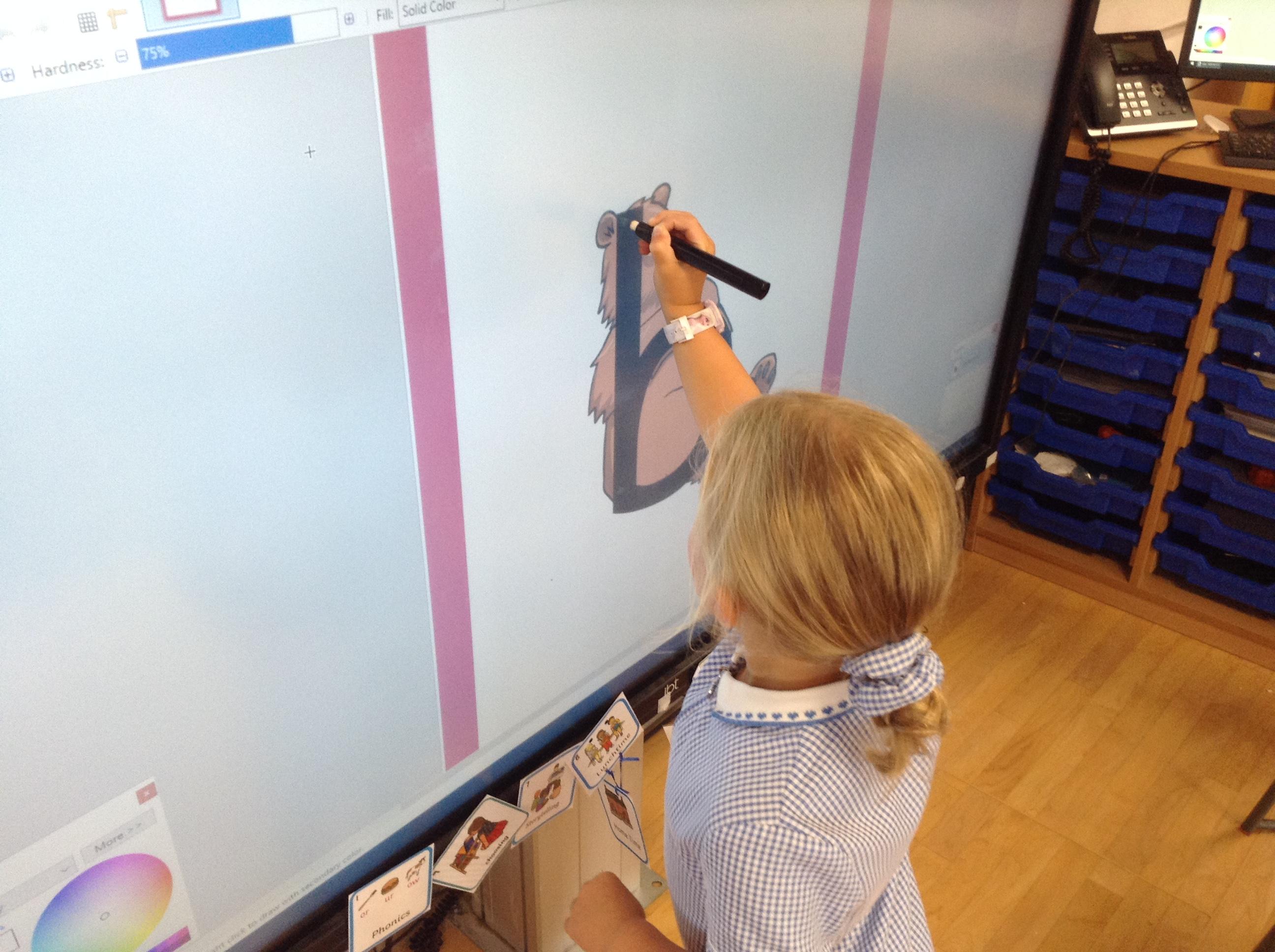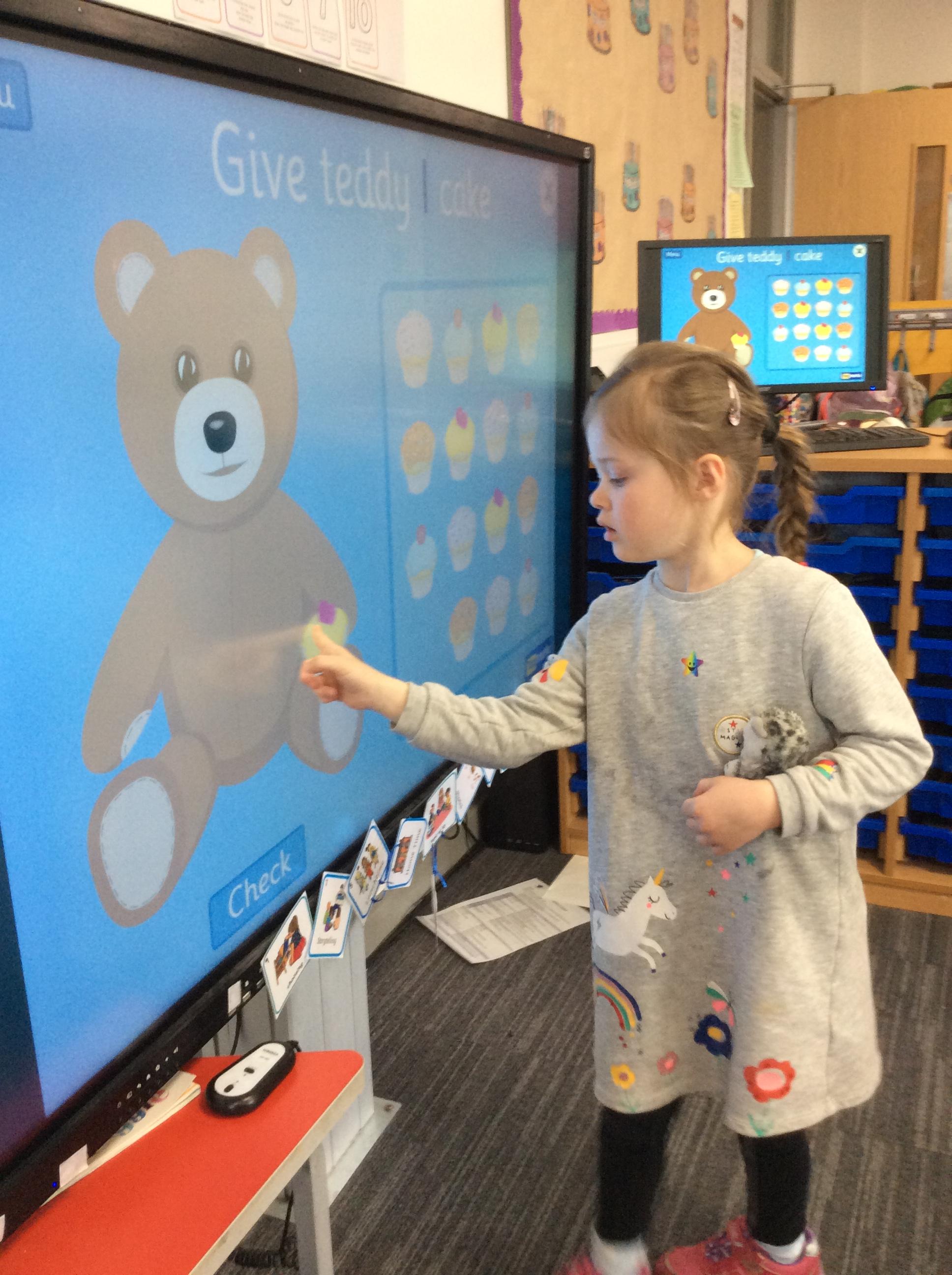 In nursery we have been exploring technology through play. Looking at how things work through cause and effect. For example, using the torches to create patterns and shadows and using old remote controls to pretend to change television channels. We have been using technology to retrieve information about animals. We have also been using online programmes to complete some learning games for maths and phonics.