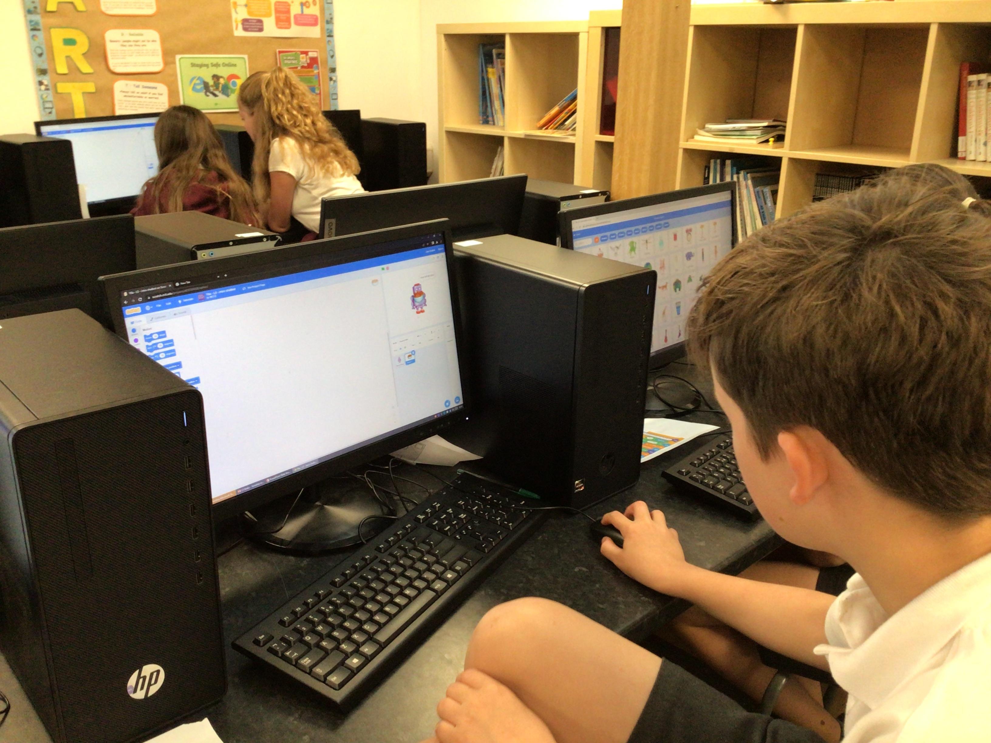Children in Year 6 build on their previous learning of how to create code using Scratch. They have understood terms such as 'variable' and 'values' and used this to design and create simple games whereby a variable will alter the value. Children enjoy designing games that reflected their own interests and showed skills in being able to debug programming.