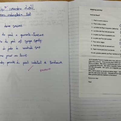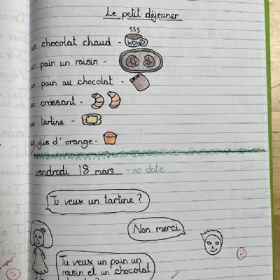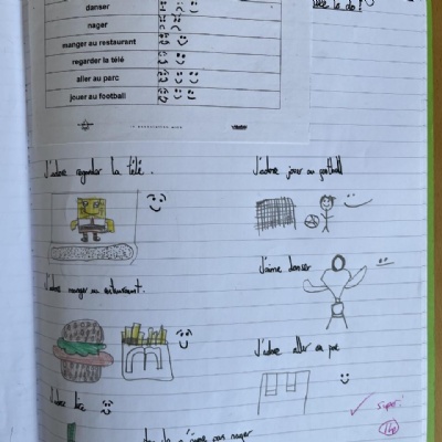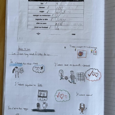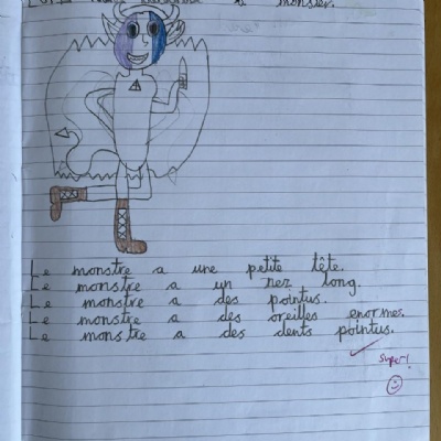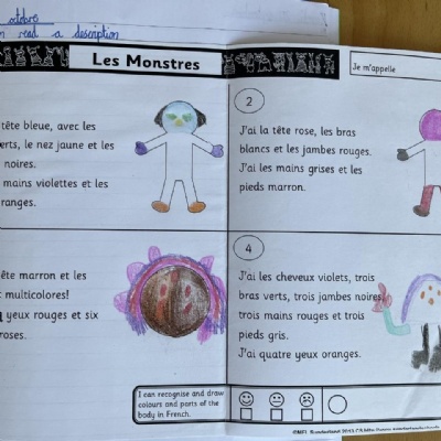 Pupils learnt the French vocabulary for parts of the body and face, building on from the adjectives learnt in Year 3. The children were able to understand descriptions of monsters and to draw and write about their own monsters. Pupils can write sentences to introduce a family and to give information about their own family and pets. After learning the vocabulary for various activities, pupils completed a class survey to ask others their opinions and write sentences to give their opinions of activities.