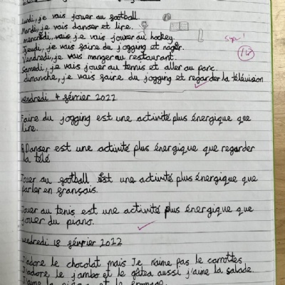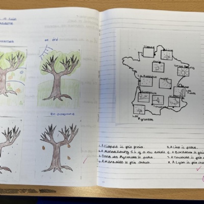 Using the activities learnt in Year 4, pupils completed a plan in the future tense. They also compared activities in terms of how energetic they are. Pupils are able to give a weather forecast for some towns in France on a day and describe what the weather is like in each season. They also used the points of the compass to write about the location of some English and French towns.