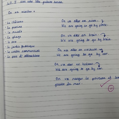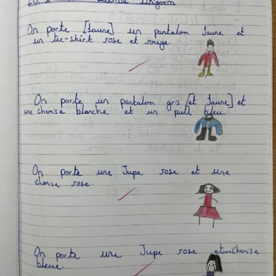 Pupils can write sentences saying what they have and don't have in their pencil cases. They can use adjectives in sentences describing uniform. Pupils can read a text and answer questions in French. They can say what jobs people have and where they work. They learnt the words for parts of the house and wrote descriptions of their ideal houses, using adjectives and connectives. Pupils researched countries around the World where French is dimensional, planned a trip to one of the countries and presented their PowerPoints to the class, including their future plans.