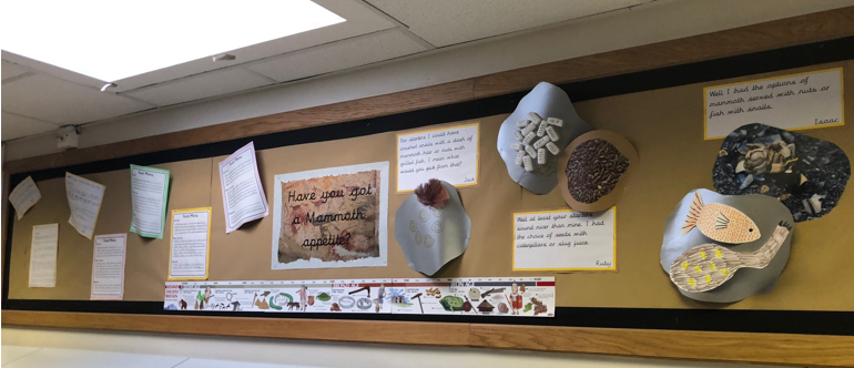 Year 3 have the opportunity to learn about prehistory, by looking at the stone age! They get to learn about what life may have been like for people during the stone age, and what they may have eaten, and they also link to their art by recreating cave paintings