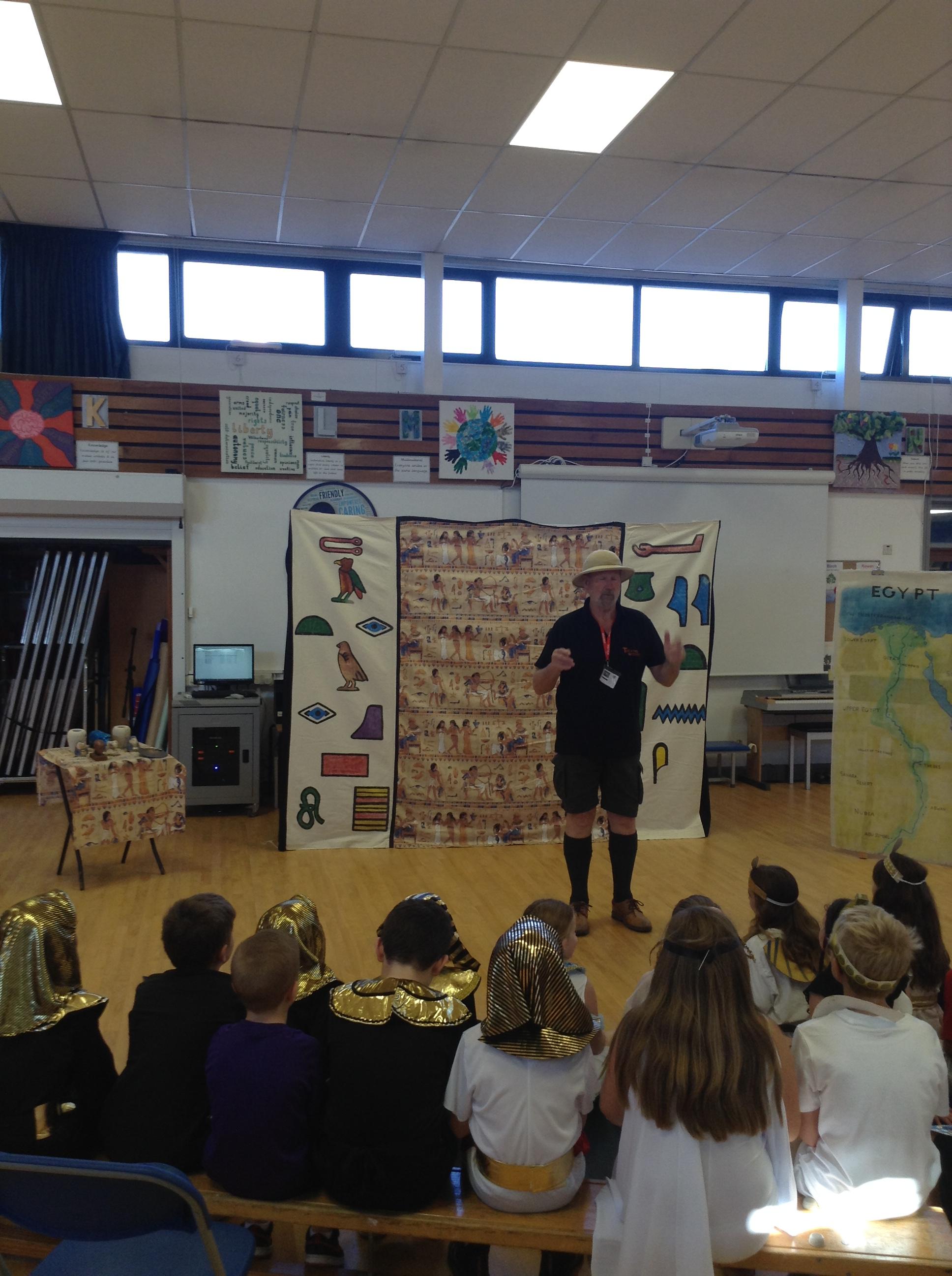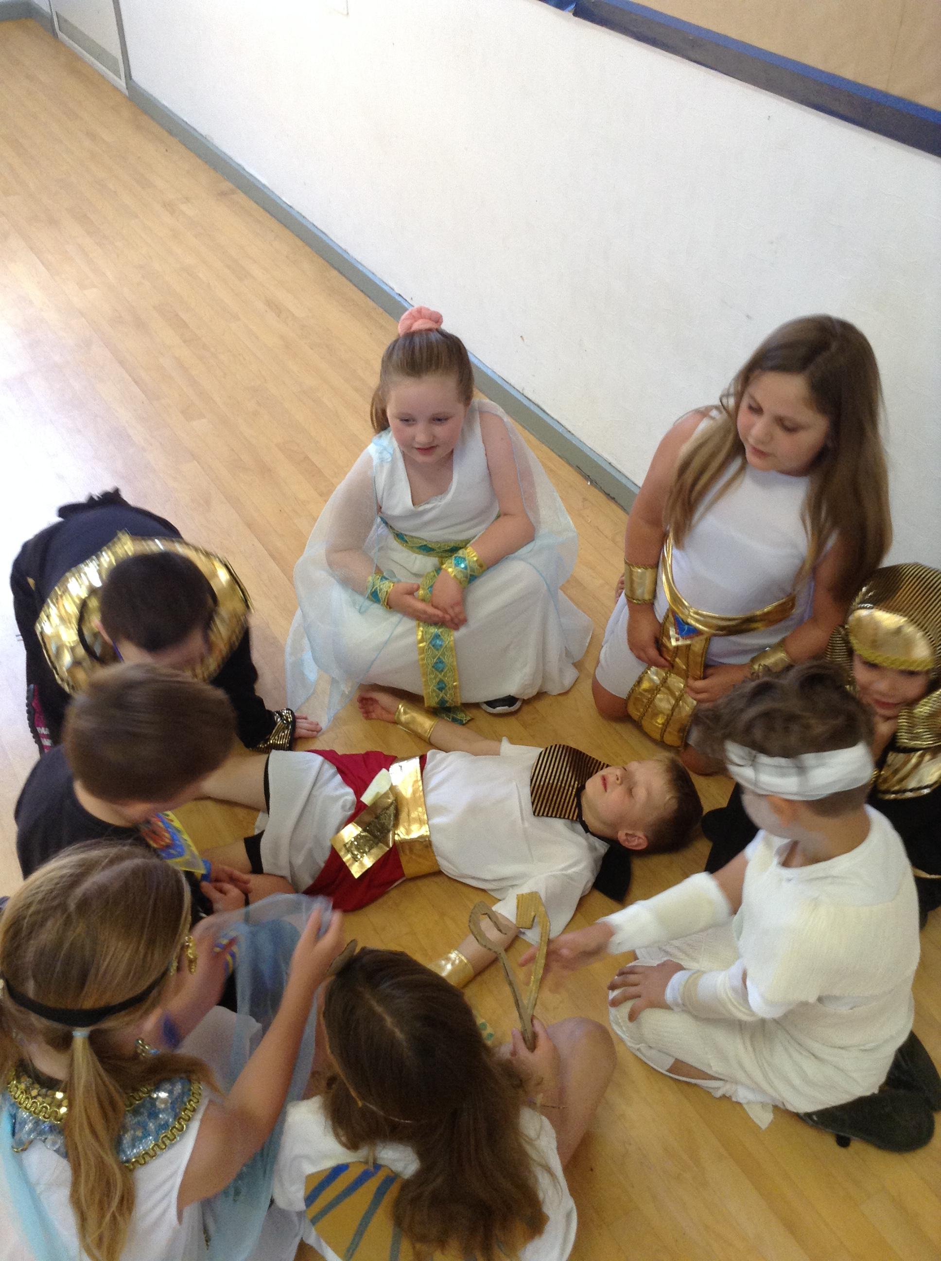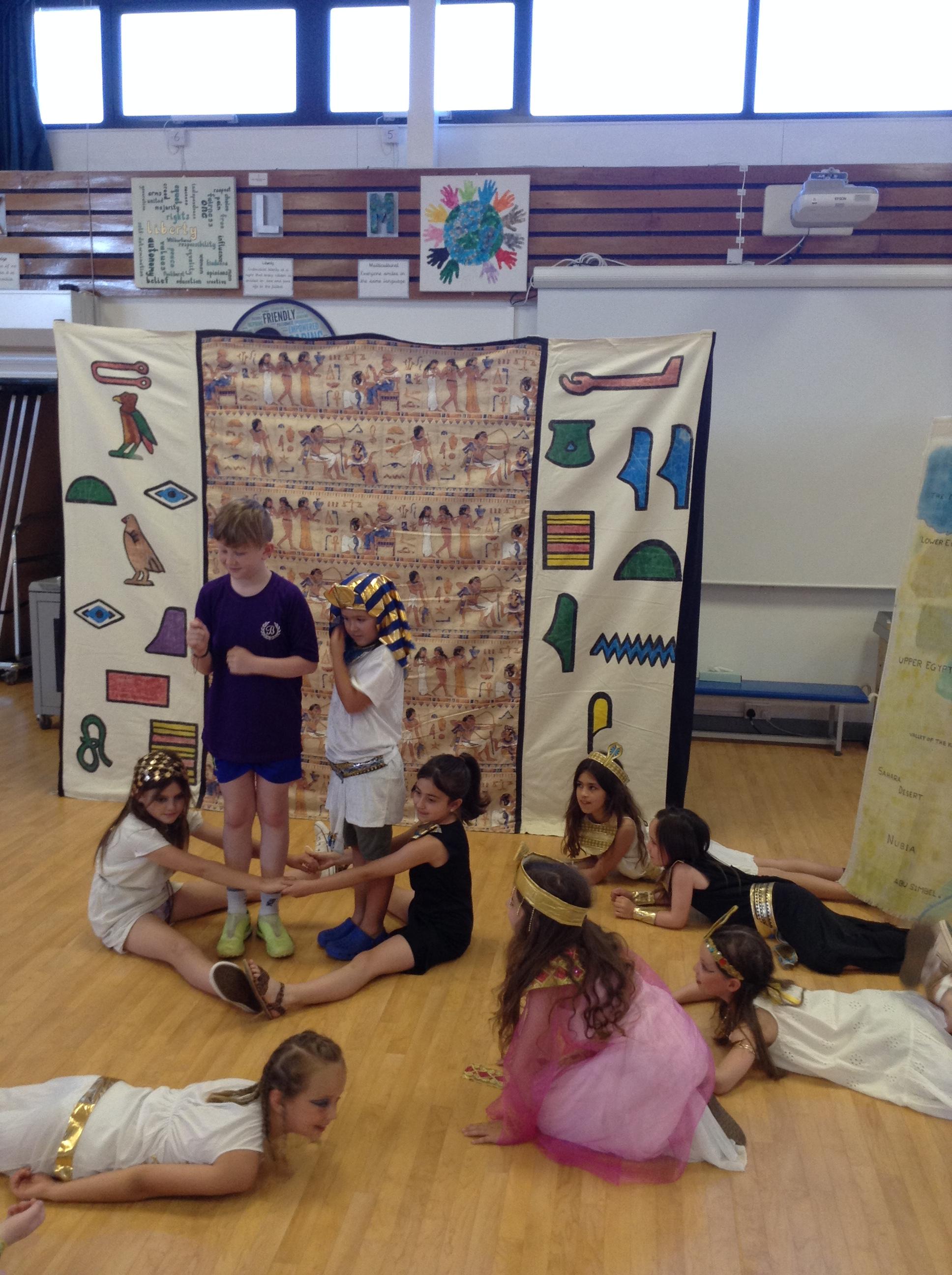 We had our Ancient Egyptian day where we dressed up as Egyptian gods and goddesses, mummies and pharaohs. We took part in drama activities during our workshop, which enabled us to recap our subject knowledge. We learned lots of interesting facts about the discovery of Tutankhamum's toms by Howard Carter and about what they discovered in his tomb.
