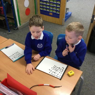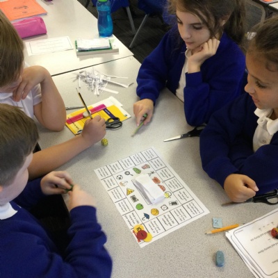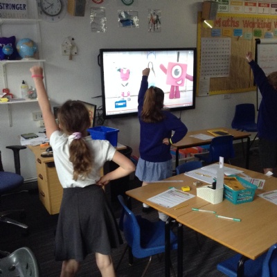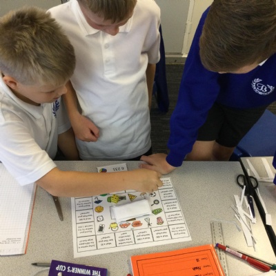 Lots of games are also being used to practice key skills and knowledge throughout the school. Here are Year 4 playing a Place value game.