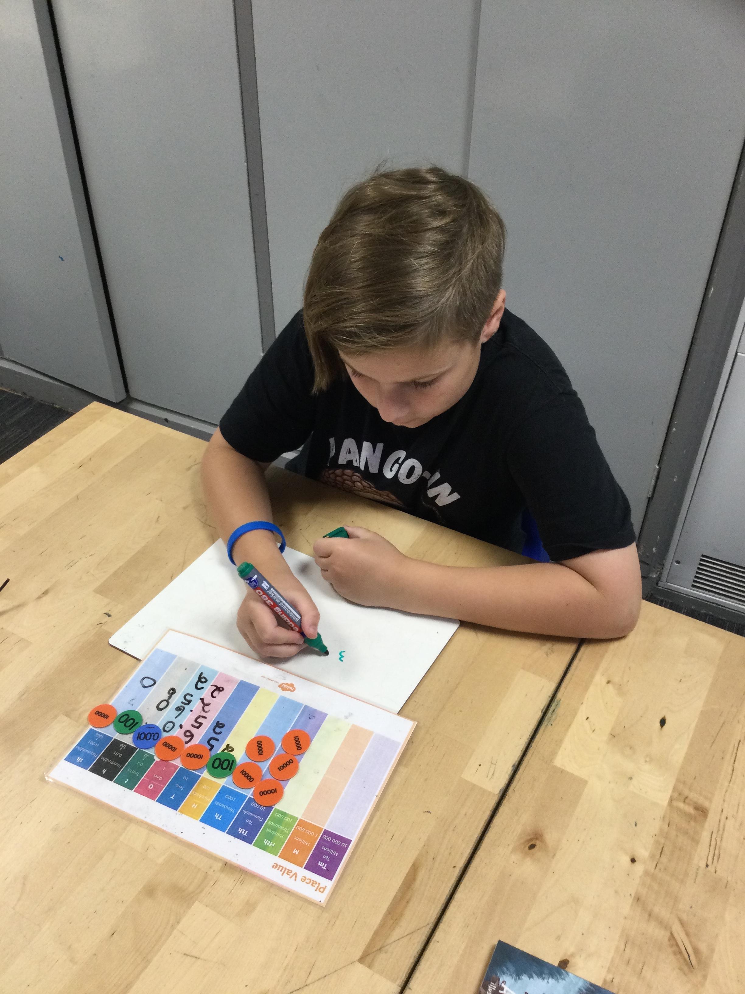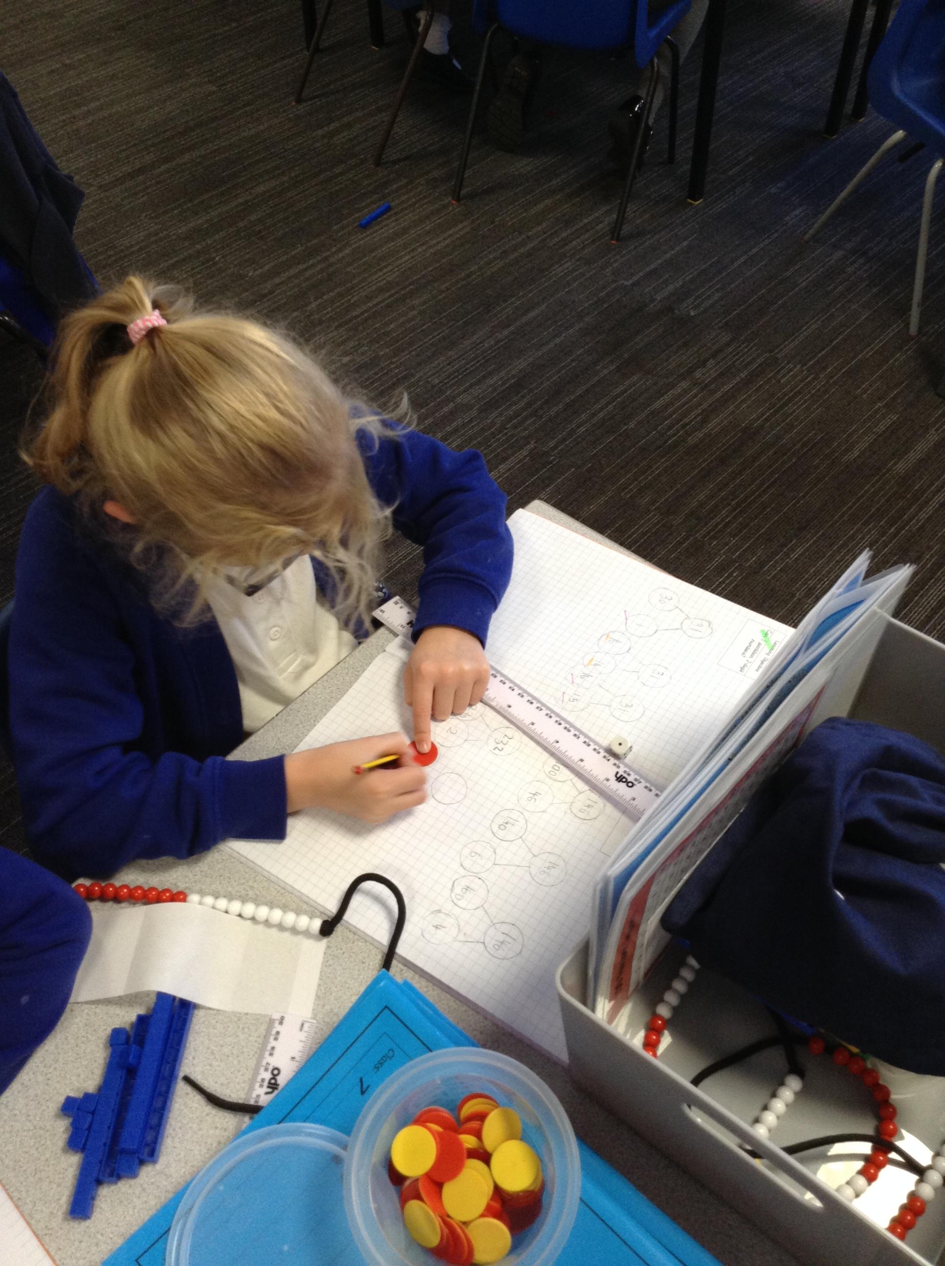 In order to help them fully understand how column addition works, Year 5 have utilised place value counters to help them see the value of each number and how each value is added together to make the final total.  This has been particularly helpful in helping them to see what happens when there are more than 9 ones, for example, in the ones column and why they might need to move some over into the next column.
