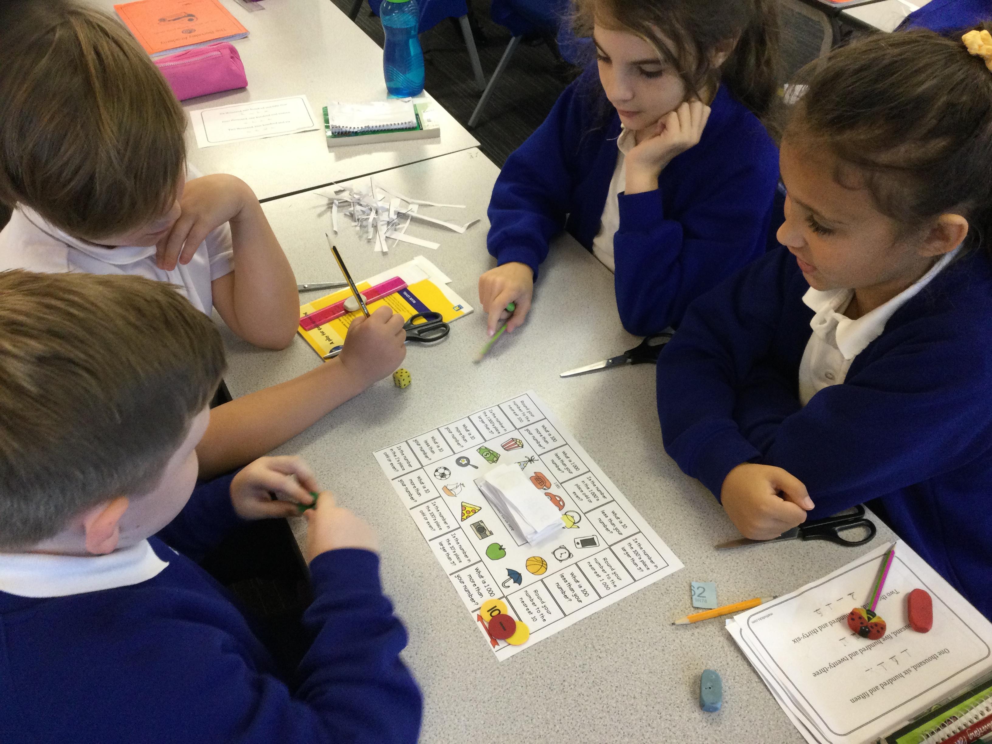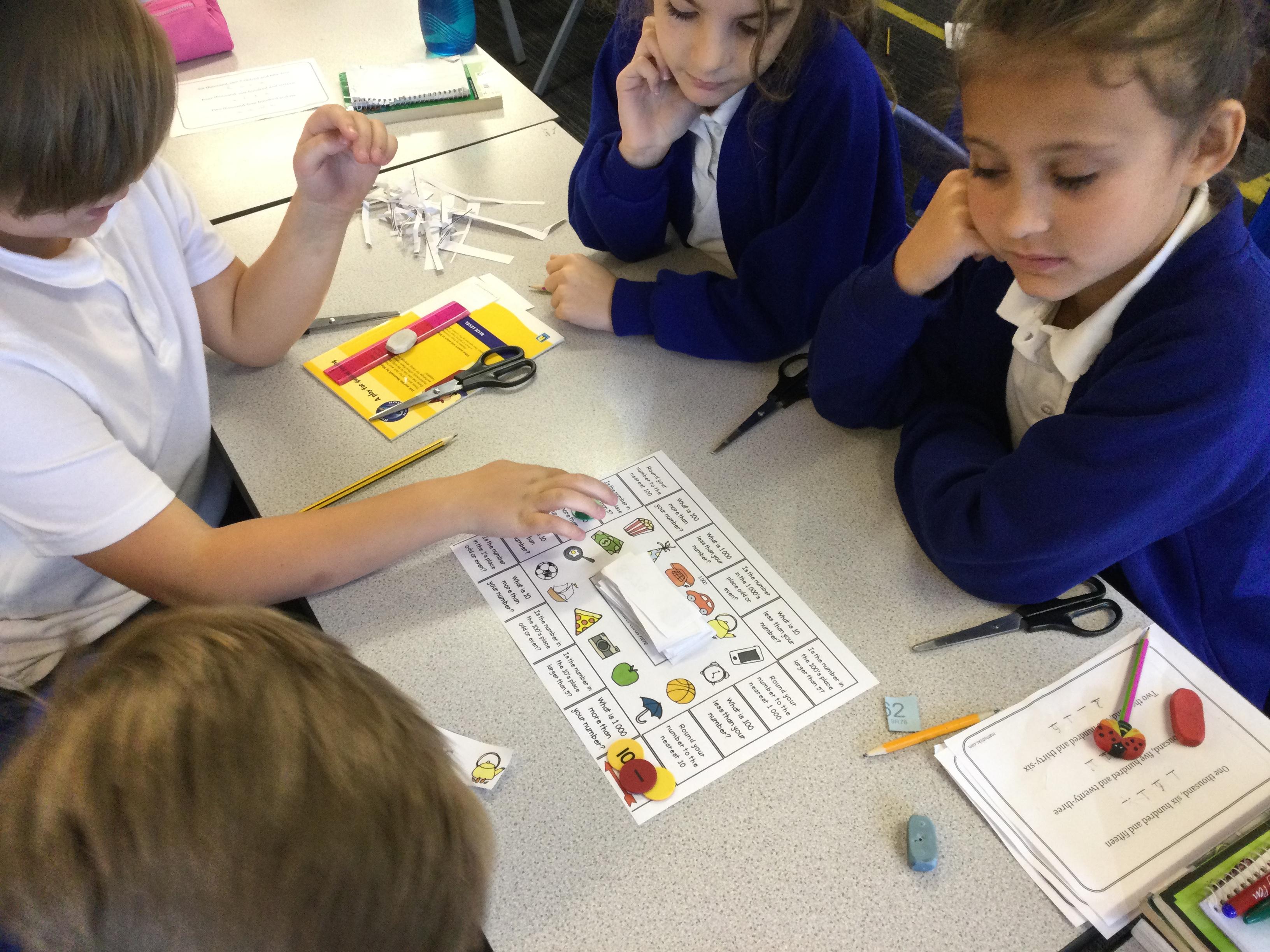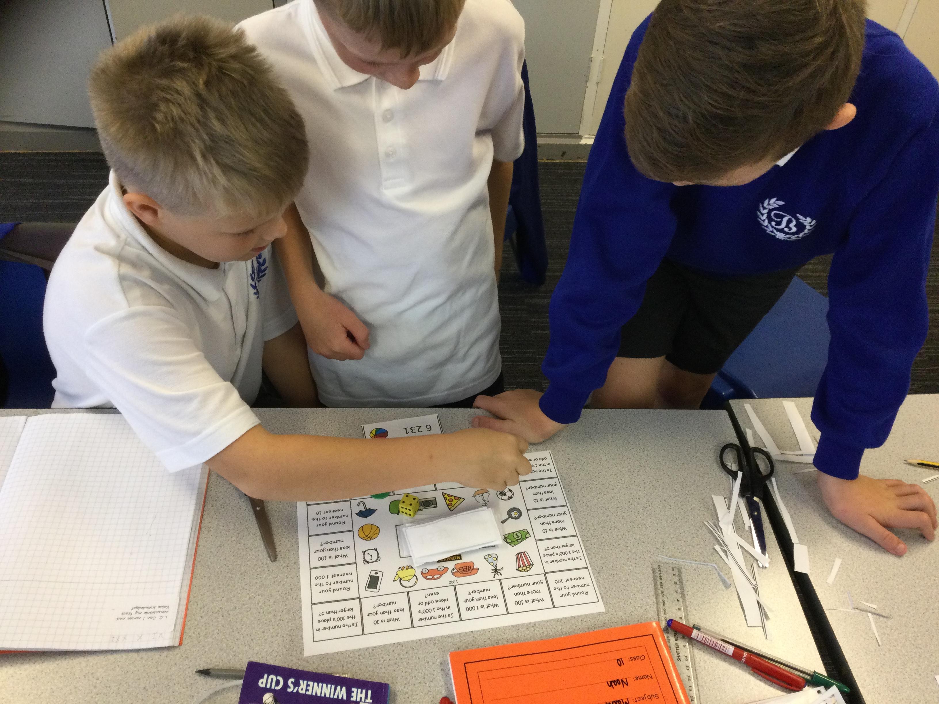 Lots of games are also being used to practice key skills and knowledge throughout the school.  Here are Year 4 playing a Place value game.