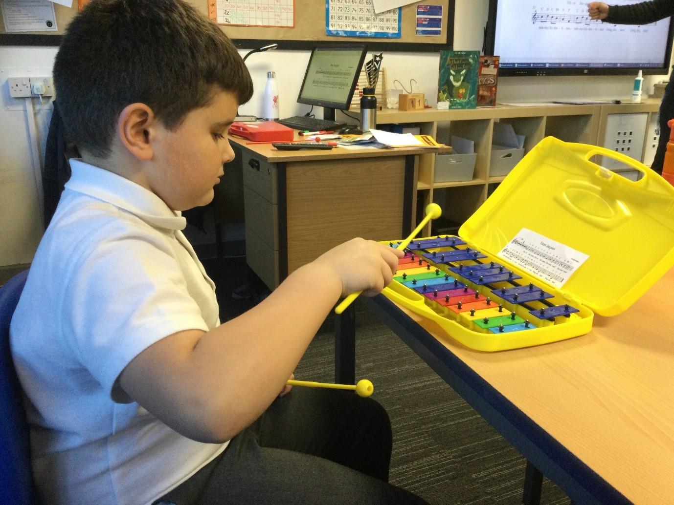 Children in year 3 have been listening and responding to a range of music and learning to play the glockenspiel, learning to play song such as 'When the Saints Go Marching in' and playing along to backing music.