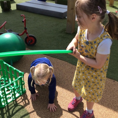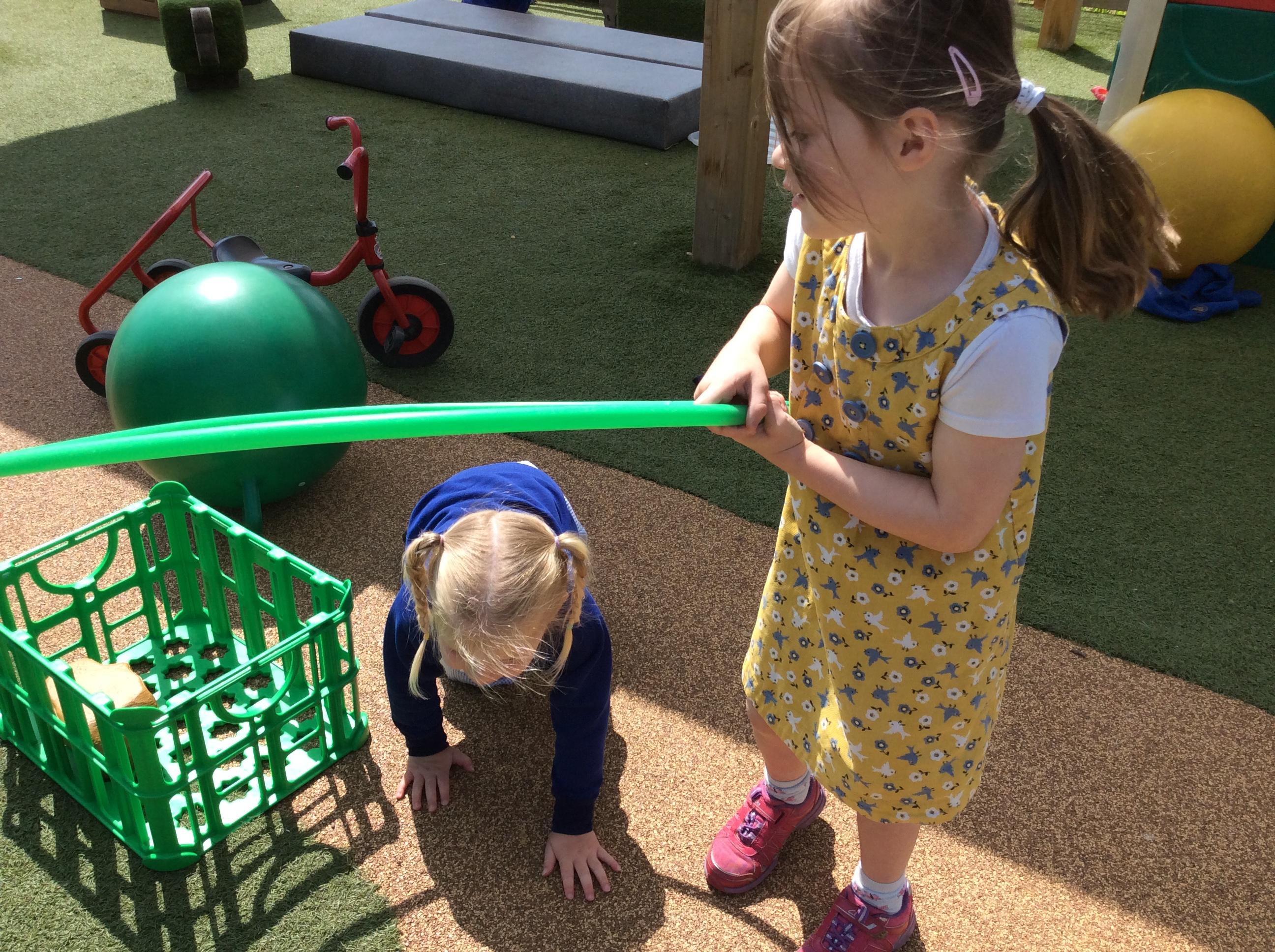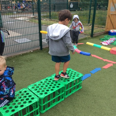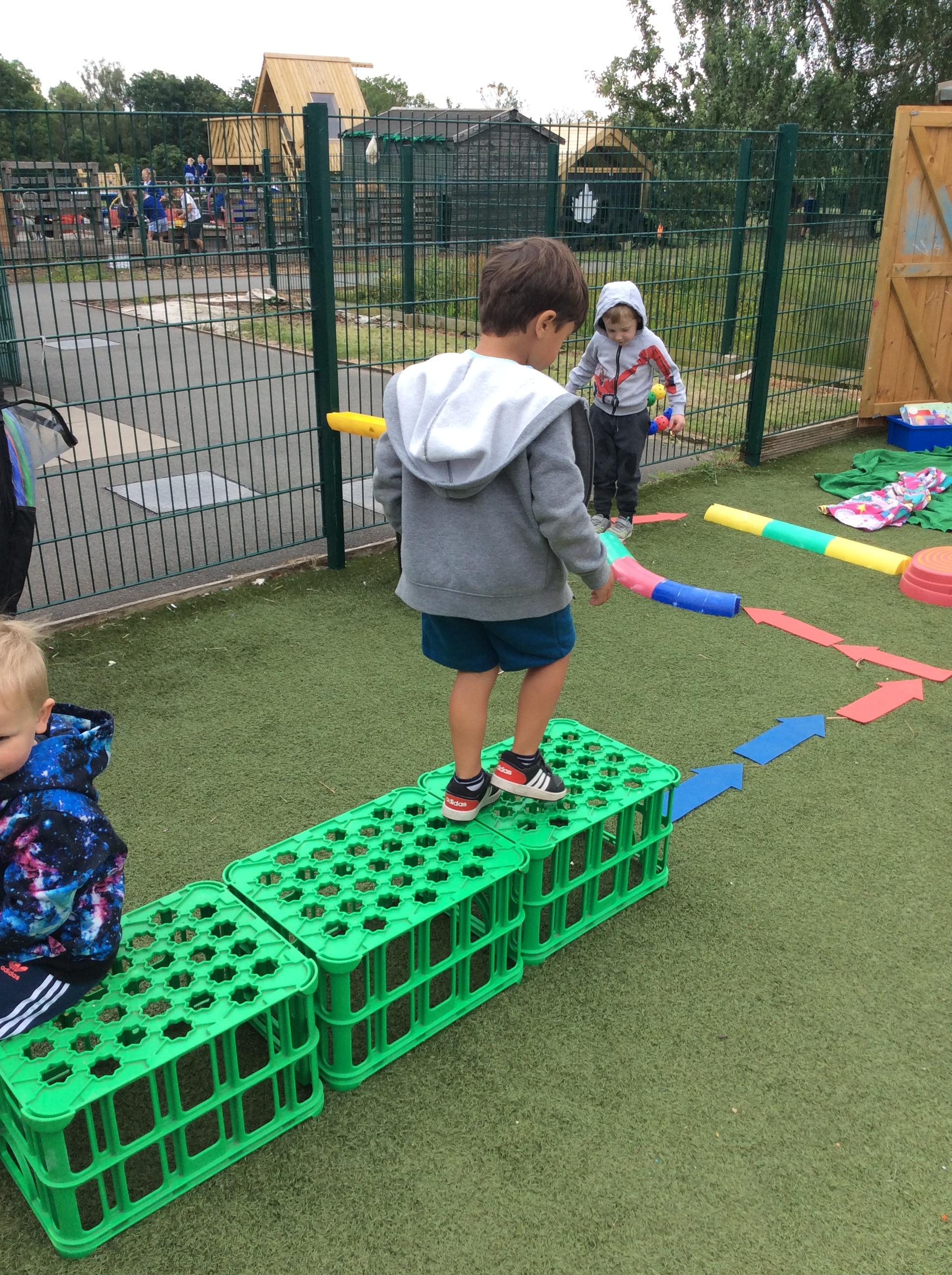 In PE we encourage children to think about how they can move their body, from large gross motor skills, learning to catch a ball, complete an obstacle course or turn the peddles on a bike, to fine motor skills using our small muscles to thread, pinch and manipulate materials. The children learn to negotiate space and get a sense of self and how they can move safely. We develop team building skills through turn taking games and discuss the impact that exercise has on our bodies. We also learn to look after ourselves and care for our bodies.