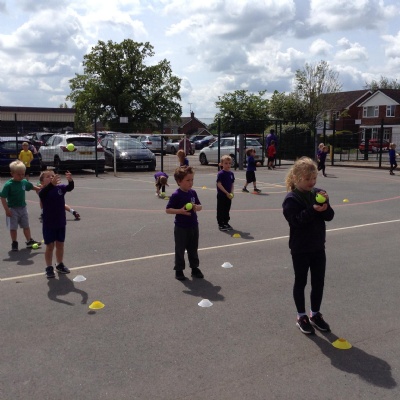 In reception we have been practising ball control and finding different ways of throwing and catching. We have also been coached by Stoke City, exploring different ways of jumping, as well as getting ready for Sports Day!
