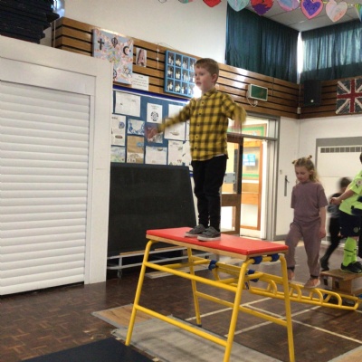 Year 2 have been creating their own gymnastics sequences. They have been exploring how to travel in a variety of ways, holding a shape whilst balancing on different points of the body and linking actions to make a sequence. They have included lots of exciting and interesting balances, jumps and rolls too!
