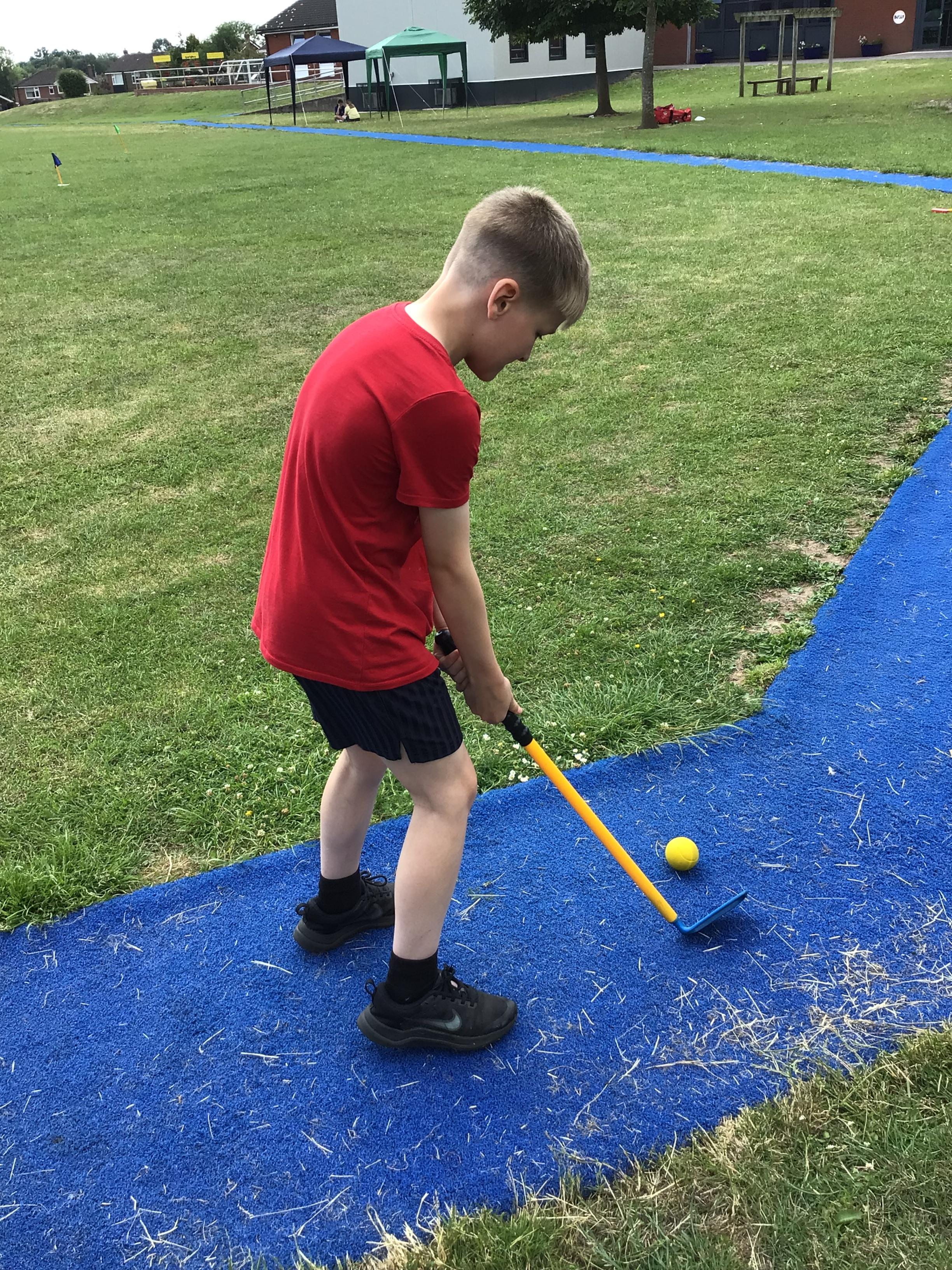 In rounders, children moved from refining their skills of throwing and catching and have been able to develop skills of leadership and teamwork as they have gained in confidence. In golf, children have enjoyed learning a variety of new skills, including putting, which has been really demanding in terms of patience and co-ordination.