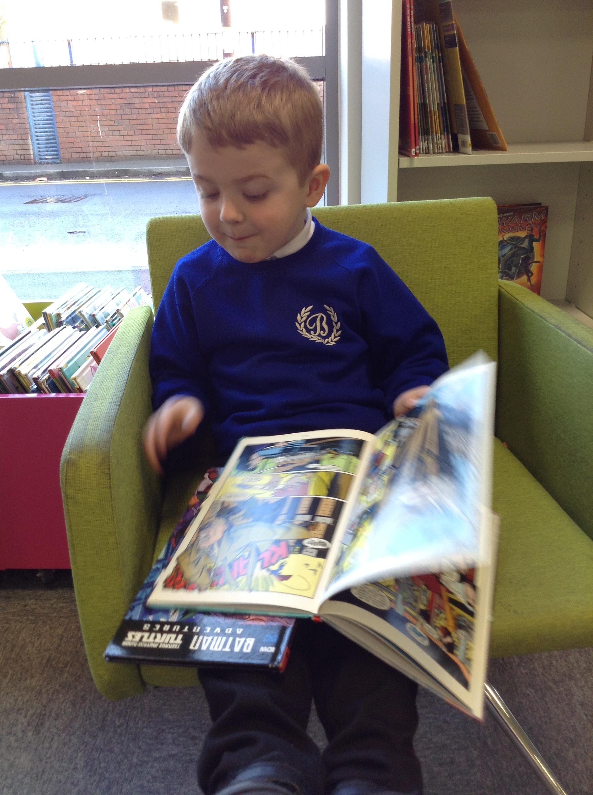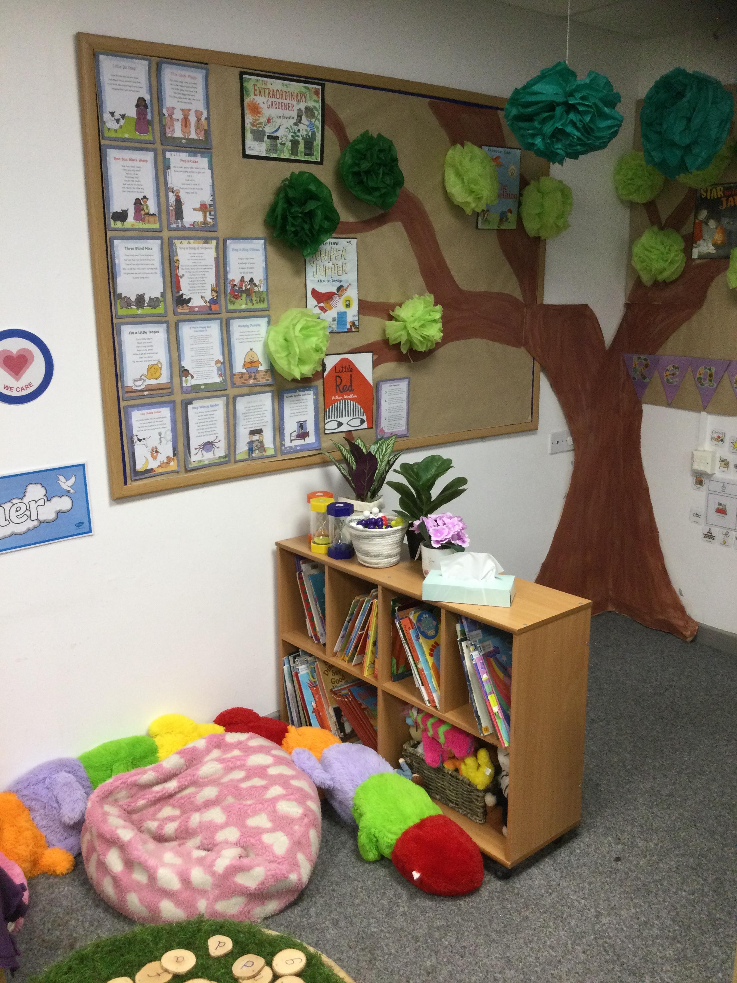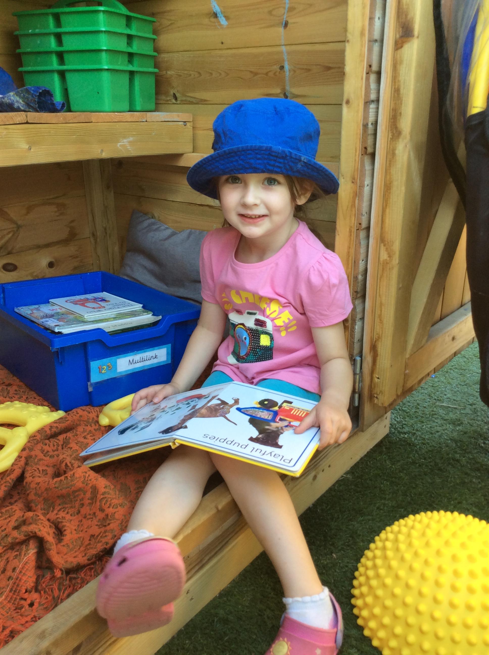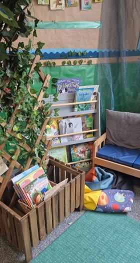 Children continue to develop a love of reading founded in nursery. They share a wealth of stories together and experience stories by being read to and through play.