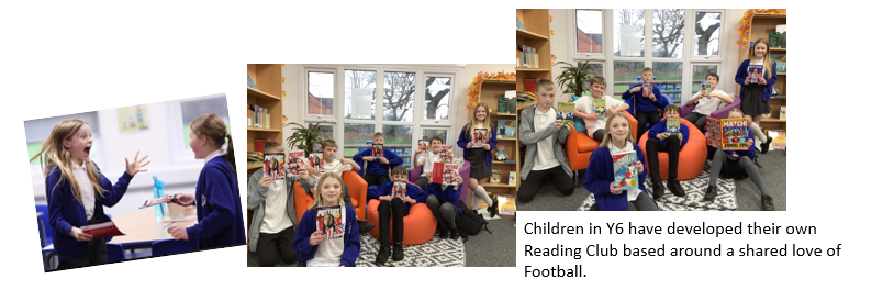 By Year 6 children are confident and experienced readers and have an clear view of the genres and authors they enjoy reading. They are able to present the views of authors and of themselves using clear evidence and offer counter viewpoints. Their knowledge of texts and authors allows them to compare and contrast books they've read and see the links between themes. Reading helps the children understand the effects on individuals of events of the past and present.