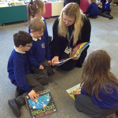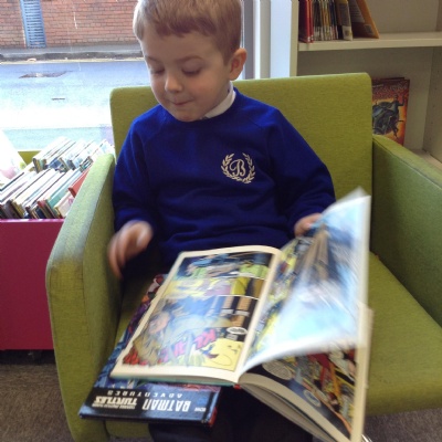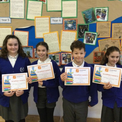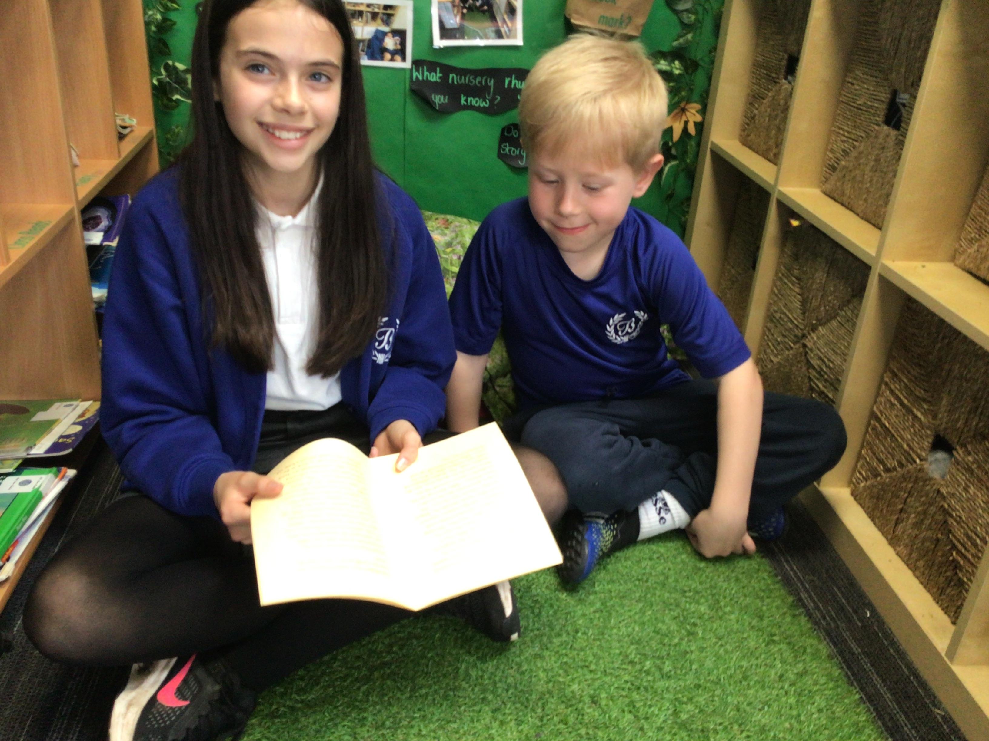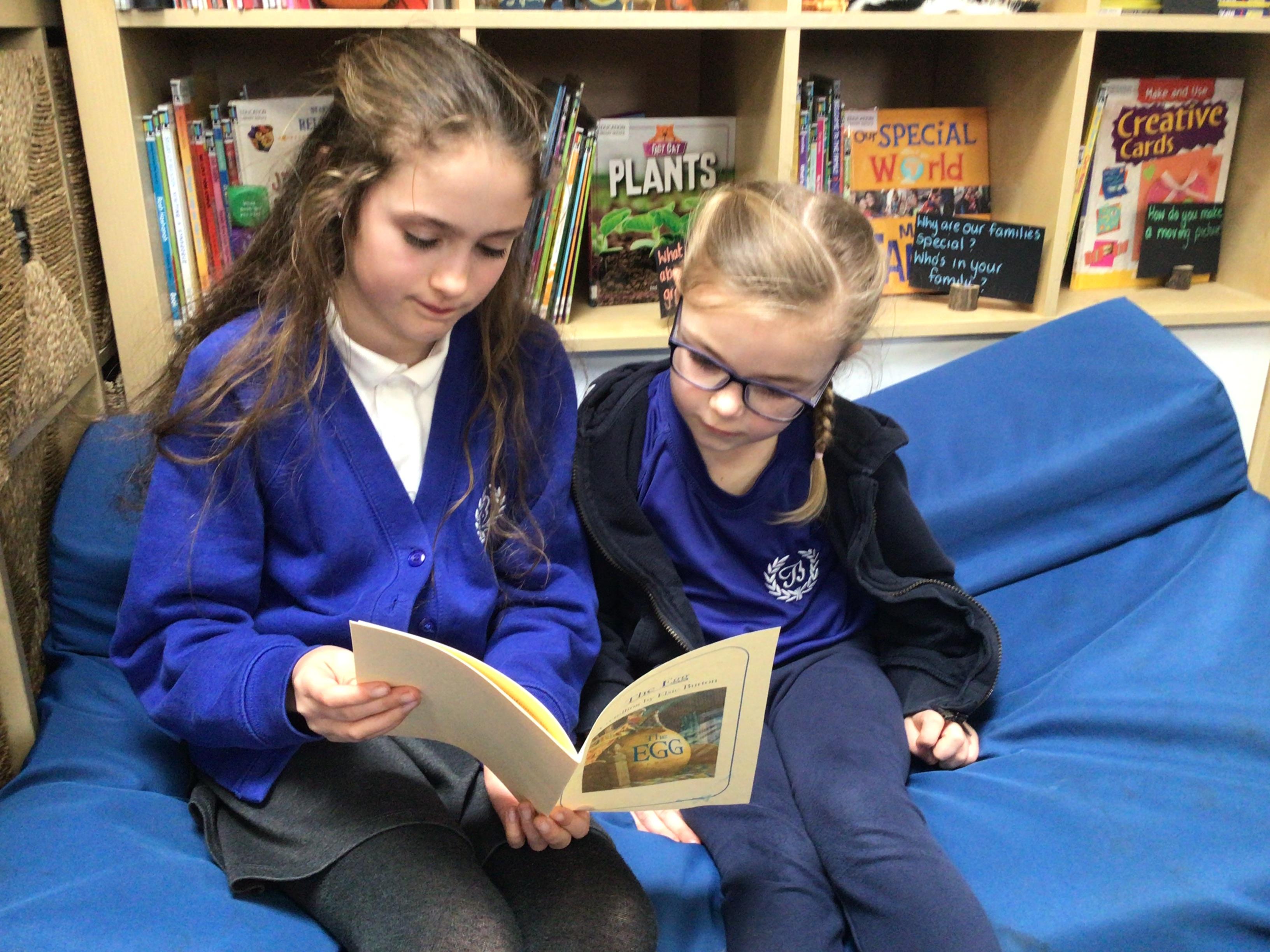 Year 6 are enthusiastic role models to younger children and have even written their own stories using their individual buddies as main characters. They are also quite competitive readers amongst themselves and enjoy comparing the number of books read on the Accelerated Reader logs.