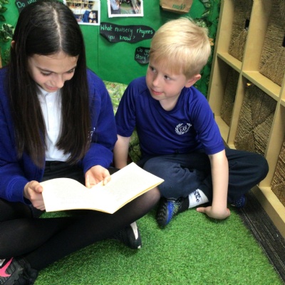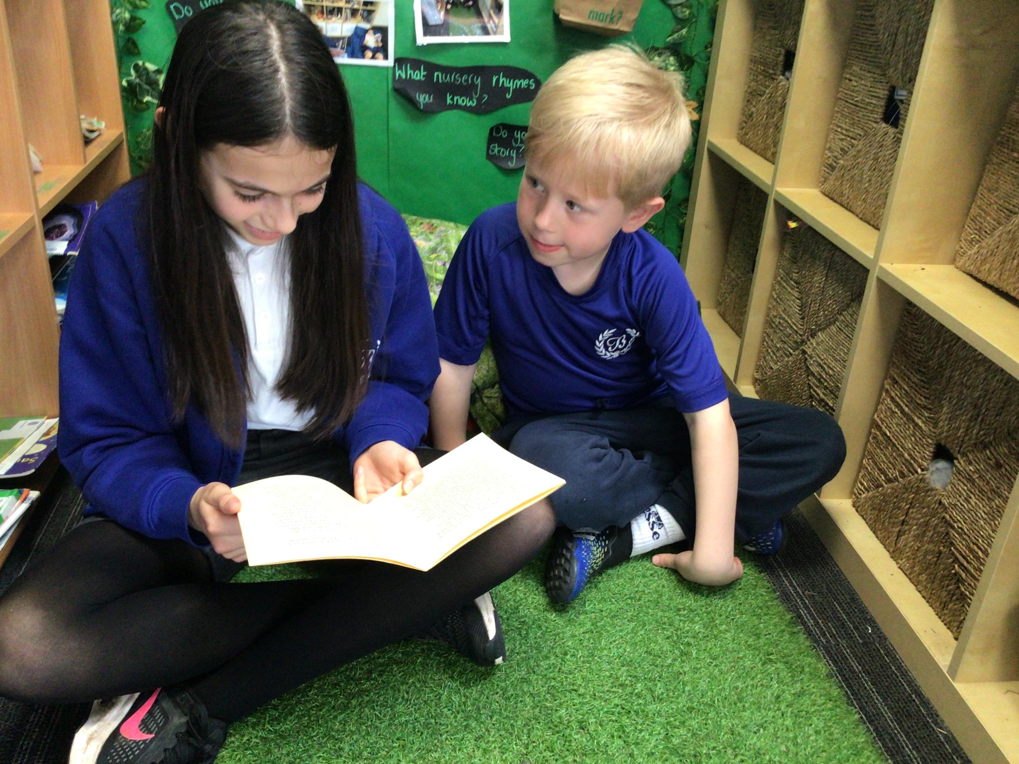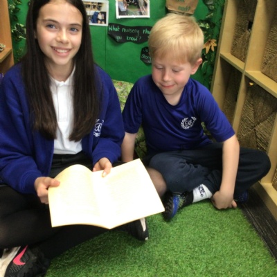 Reading comes in many forms. Some of the Year 6's favourite times to read are with their Year 1 buddies and online to complete Accelerated Reader quizzes.